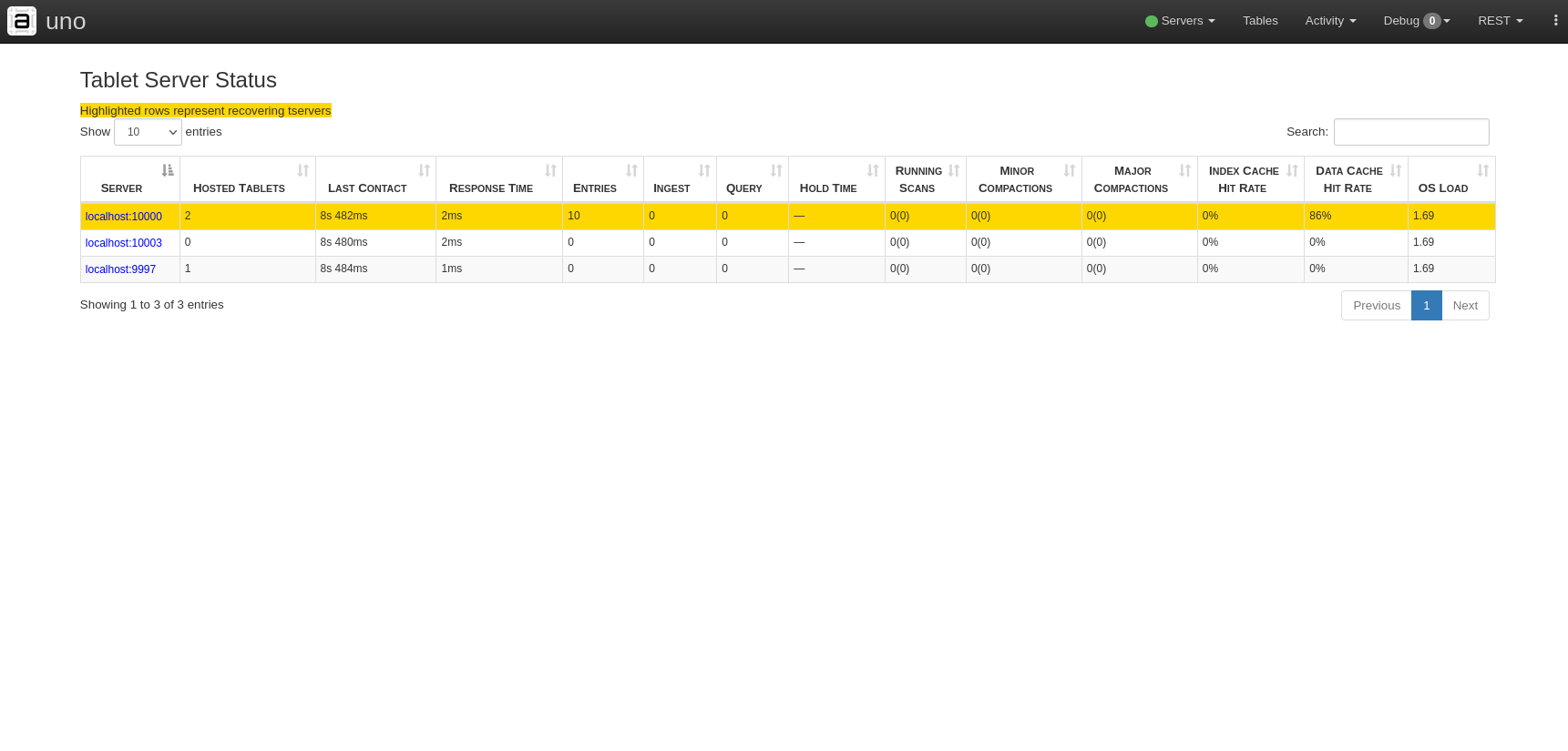 Fixes #2566 This PR highlights the rows of the tservers that are recovering. It also adds a caption when there are highlighted rows.  Since recovery happens so quick, to test this I hardcoded an entry into the list of recovering servers which can be done by adding back the code removed in feba7196386185e98b2e80bae6df7cf8feca01cd. -- This is an automated message from the Apache Git Service. To respond to the message, please log on to GitHub and use the URL above to go to the specific comment. To unsubscribe, e-mail: [email protected] For queries about this service, please contact Infrastructure at: [email protected]