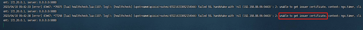 > ```shell > curl https://your-upstream-server -vvv --cacert ca.crt > ``` the route config is : `{ "id": "455214153062154944", "create_time": 1680858378, "update_time": 1681111004, "uri": "/test123/*", "name": "health", "priority": 1, "methods": [ "GET", "POST", "PUT", "DELETE", "PATCH", "HEAD", "OPTIONS", "CONNECT", "TRACE" ], "upstream": { "nodes": [ { "host": "192.168.29.93", "port": 8180, "weight": 1 }, { "host": "192.168.39.96", "port": 8180, "weight": 1 }, { "host": "192.168.88.66", "port": 9001, "weight": 1 } ], "retries": 1, "timeout": { "connect": 6, "send": 6, "read": 6 }, "type": "roundrobin", "checks": { "active": { "concurrency": 10, "healthy": { "http_statuses": [ 200, 302 ], "interval": 5, "successes": 2 }, "http_path": "/", "https_verify_certificate": true, "port": 9443, "timeout": 1, "type": "https", "unhealthy": { "http_failures": 5, "http_statuses": [ 429, 404, 500, 501, 502, 503, 504, 505 ], "interval": 5, "tcp_failures": 2, "timeouts": 3 } } }, "scheme": "http", "pass_host": "pass", "keepalive_pool": { "idle_timeout": 60, "requests": 1000, "size": 320 }, "retry_timeout": 1 }, "labels": { "API_VERSION": "12" }, "status": 1 }` now the error is :    -- This is an automated message from the Apache Git Service. To respond to the message, please log on to GitHub and use the URL above to go to the specific comment. To unsubscribe, e-mail: [email protected] For queries about this service, please contact Infrastructure at: [email protected]