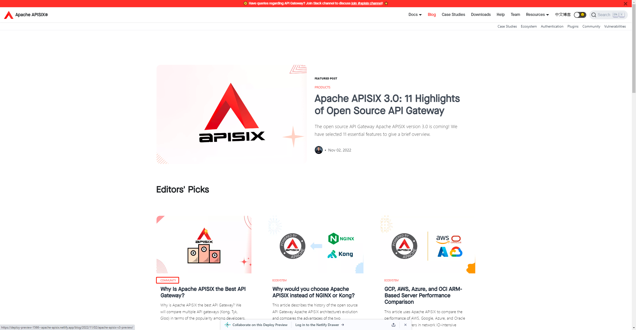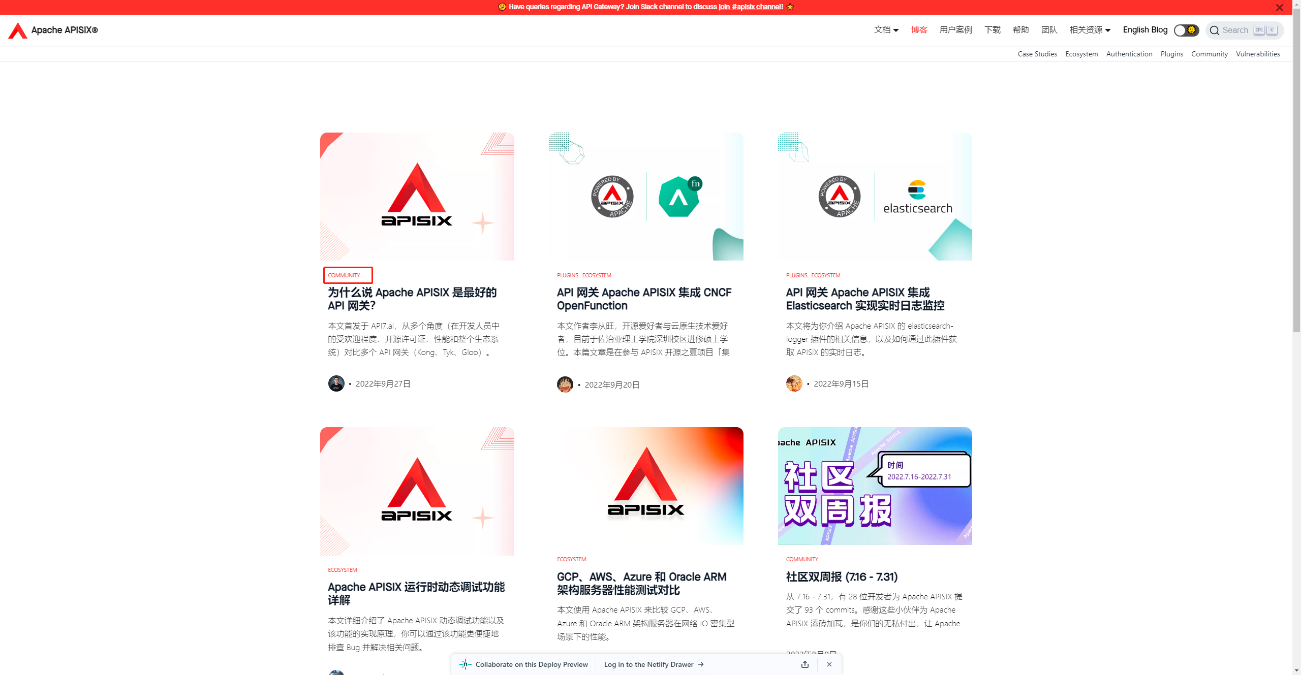 Checked, LGTM. Preview: https://deploy-preview-1566--apache-apisix.netlify.app/blog/  Preview https://deploy-preview-1566--apache-apisix.netlify.app/zh/blog/page/7/  -- This is an automated message from the Apache Git Service. To respond to the message, please log on to GitHub and use the URL above to go to the specific comment. To unsubscribe, e-mail: [email protected] For queries about this service, please contact Infrastructure at: [email protected]