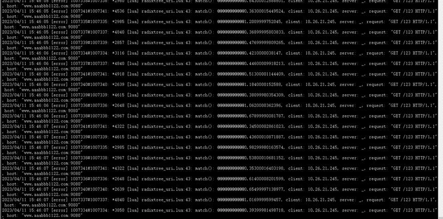 refer to #9259 pressure test: environment: centos 7 8core 32G mem wrk -c1000 -d60s -t8 --latency --timeout=15s http://www.aaabbb1122.com:9080/123 patched version:   elapsed time to change a route:  original version:   elapsed time to change a route:  -- This is an automated message from the Apache Git Service. To respond to the message, please log on to GitHub and use the URL above to go to the specific comment. To unsubscribe, e-mail: [email protected] For queries about this service, please contact Infrastructure at: [email protected]
