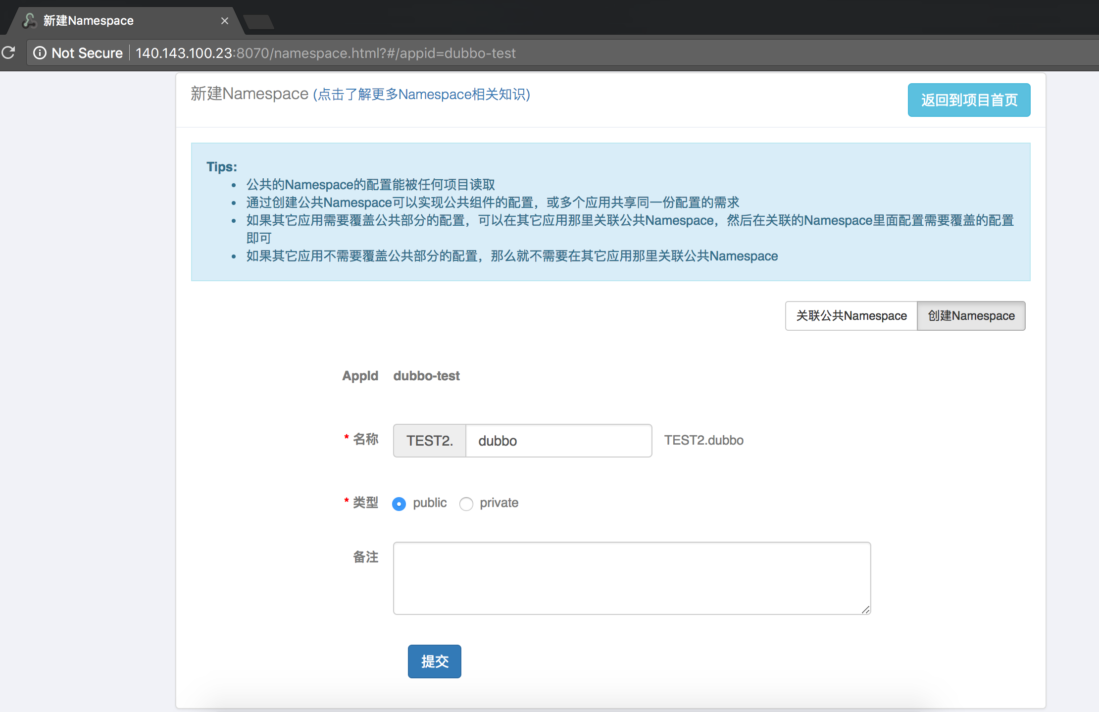 ########## File path: dubbo-config/dubbo-config-dynamic/src/main/java/org/apache/dubbo/config/dynamic/support/apollo/ApolloDynamicConfiguration.java ########## @@ -0,0 +1,134 @@ +/* + * Licensed to the Apache Software Foundation (ASF) under one or more + * contributor license agreements. See the NOTICE file distributed with + * this work for additional information regarding copyright ownership. + * The ASF licenses this file to You under the Apache License, Version 2.0 + * (the "License"); you may not use this file except in compliance with + * the License. You may obtain a copy of the License at + * + * http://www.apache.org/licenses/LICENSE-2.0 + * + * Unless required by applicable law or agreed to in writing, software + * distributed under the License is distributed on an "AS IS" BASIS, + * WITHOUT WARRANTIES OR CONDITIONS OF ANY KIND, either express or implied. + * See the License for the specific language governing permissions and + * limitations under the License. + */ +package org.apache.dubbo.config.dynamic.support.apollo; + +import com.ctrip.framework.apollo.Config; +import com.ctrip.framework.apollo.ConfigChangeListener; +import com.ctrip.framework.apollo.ConfigService; +import com.ctrip.framework.apollo.enums.PropertyChangeType; +import com.ctrip.framework.apollo.model.ConfigChange; +import com.ctrip.framework.apollo.model.ConfigChangeEvent; +import org.apache.dubbo.common.Constants; +import org.apache.dubbo.common.URL; +import org.apache.dubbo.config.dynamic.AbstractDynamicConfiguration; +import org.apache.dubbo.config.dynamic.ConfigChangeType; +import org.apache.dubbo.config.dynamic.ConfigType; +import org.apache.dubbo.config.dynamic.ConfigurationListener; + +/** + * + */ +public class ApolloDynamicConfiguration extends AbstractDynamicConfiguration { + private static final String APOLLO_ENV_KEY = "env"; + // FIXME the key? + private static final String APOLLO_ADDR_KEY = ""; + private static final String APOLLO_CLUSTER_KEY = "apollo.cluster"; + /** + * support two namespaces: application -> dubbo + */ + private Config dubboConfig; + private Config appConfig; + + public ApolloDynamicConfiguration() { + + } + + @Override + public void init() { + /** + * Instead of using Dubbo's configuration, I would suggest use the original configuration method Apollo provides. + */ +// String configEnv = env.getCompositeConf().getString(ENV_KEY); +// String configCluster = env.getCompositeConf().getString(CLUSTER_KEY); + String configEnv = url.getParameter(Constants.CONFIG_ENV_KEY); + String configAddr = url.getParameter(Constants.CONFIG_ADDRESS_KEY); + String configCluster = url.getParameter(Constants.CONFIG_CLUSTER_KEY); + if (configEnv != null) { + System.setProperty(APOLLO_ENV_KEY, configEnv); + } + if (configAddr != null) { + System.setProperty(APOLLO_ADDR_KEY, configAddr); + } + if (configCluster != null) { + System.setProperty(APOLLO_CLUSTER_KEY, configCluster); + } + + dubboConfig = ConfigService.getConfig("dubbo"); Review comment: @chickenlj Yes, `appConfig = ConfigService.getAppConfig();` will only read the `application` namespace of the current app.id. For now, the public namespace is always prefixed with department id to ensure its uniqueness. As the screenshot below, the `TEST2` is the department id, and the public namespace name will be `TEST2.dubbo`  You may have a try with this [link](http://140.143.100.23:8070/namespace.html?#/appid=dubbo-test),user name: `admin`, password: `apollo`。 Private namespace is not necessary to have department id as its prefix, so that it could be named as `dubbo`。 In my opinion, users may configure dubbo related configurations in its private namespace like `application`, `dubbo`, `rpc`, etc for small sized companies, or in some public namespace like `common.dubbo`, `base.dubbo` for medium to large companies. What I mean here is those meduim to large companies is more likely to have a rpc framework team who will maintain an optimized global default configuration. In some cases, I think users may even configure dubbo related configurations in more than one namespace. For dubbo, I think we don't actually care what the namespace name is or how many namespaces are there, what we actually care is the configurations in it. So I would suggest we let the user pass the namespace name as an optional parameter. If it's not provided, we could fallback to `application` namespace (may be better) or `dubbo` namespace. If it's provided, then we could just use it. We could even support a comma separated namespace name parameter such as `application,dubbo` if that's necessary. With that said, I think the namespace name should not be hard-coded as `application` or `dubbo`, they are very good fallback namespace names, but it's not good to force the user to use these name. Simply because we don't actually care the names, and users may have a hundred reasons to have a different name. BTW, I would be happy to submit a pull request to `chickenlj:dynamicconfig` so that my ideas could be expressed more clearly. So just let me know if it's necessary :-) ---------------------------------------------------------------- This is an automated message from the Apache Git Service. To respond to the message, please log on GitHub and use the URL above to go to the specific comment. For queries about this service, please contact Infrastructure at: [email protected] With regards, Apache Git Services --------------------------------------------------------------------- To unsubscribe, e-mail: [email protected] For additional commands, e-mail: [email protected]