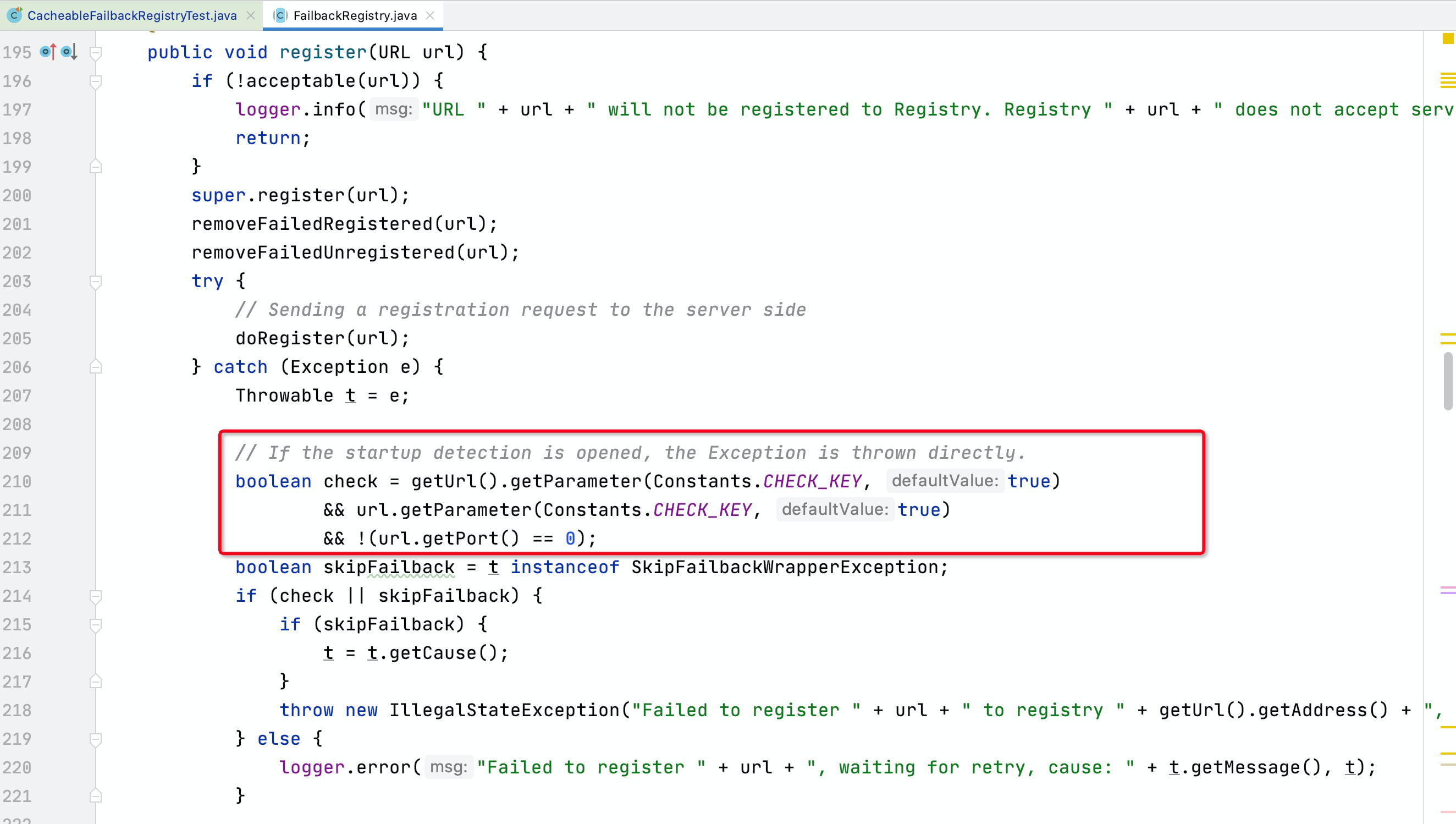 源码内部注册或订阅捕获到异常的时候,如果check=false,那么捕获异常后只会打印错误日志,如果check=true,则会抛给上层 注册过程源码大致如下  -- This is an automated message from the Apache Git Service. To respond to the message, please log on to GitHub and use the URL above to go to the specific comment. To unsubscribe, e-mail: [email protected] For queries about this service, please contact Infrastructure at: [email protected] --------------------------------------------------------------------- To unsubscribe, e-mail: [email protected] For additional commands, e-mail: [email protected]