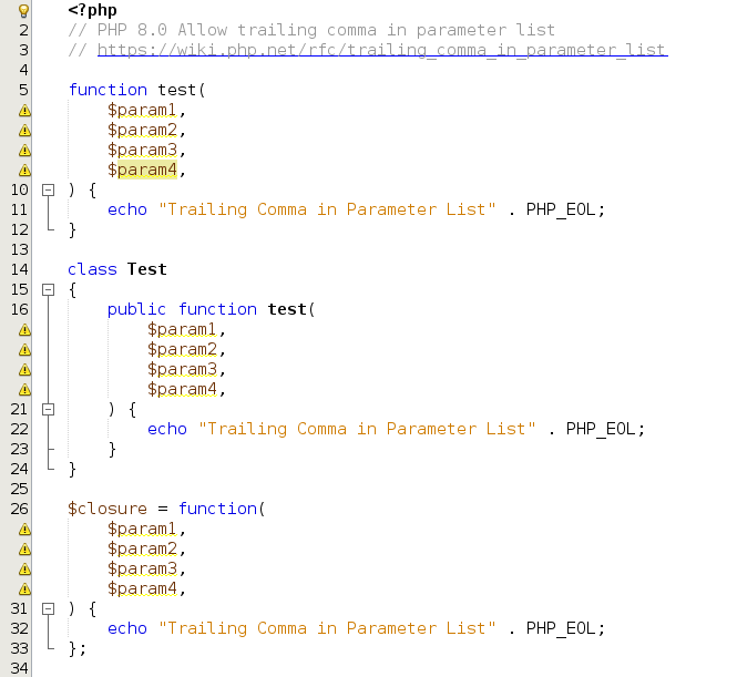 https://issues.apache.org/jira/browse/NETBEANS-4443 - https://wiki.php.net/rfc/trailing_comma_in_parameter_list - Fix `ASTPHP5Parser.cup` - Add unit test for the parser and formatting features - Fix the `PHP80UnhandledError`  ---------------------------------------------------------------- This is an automated message from the Apache Git Service. To respond to the message, please log on to GitHub and use the URL above to go to the specific comment. For queries about this service, please contact Infrastructure at: [email protected] --------------------------------------------------------------------- To unsubscribe, e-mail: [email protected] For additional commands, e-mail: [email protected] For further information about the NetBeans mailing lists, visit: https://cwiki.apache.org/confluence/display/NETBEANS/Mailing+lists