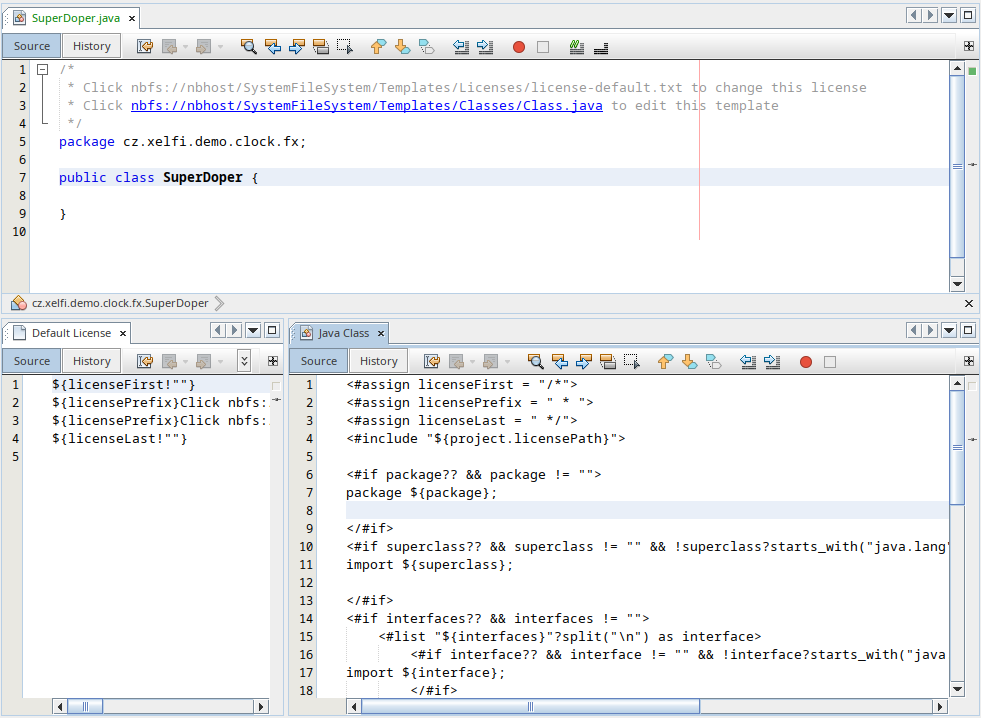 Ever annoyed by _To change this license header, choose License Headers in Project Properties._ and _To change this template file, choose Tools | Templates_ let's replace that with a clickable hyperlink:  The `nbfs:` URL would be recognized as a hyperlink and a click would open the template file in the editor. -- This is an automated message from the Apache Git Service. To respond to the message, please log on to GitHub and use the URL above to go to the specific comment. For queries about this service, please contact Infrastructure at: [email protected] --------------------------------------------------------------------- To unsubscribe, e-mail: [email protected] For additional commands, e-mail: [email protected] For further information about the NetBeans mailing lists, visit: https://cwiki.apache.org/confluence/display/NETBEANS/Mailing+lists