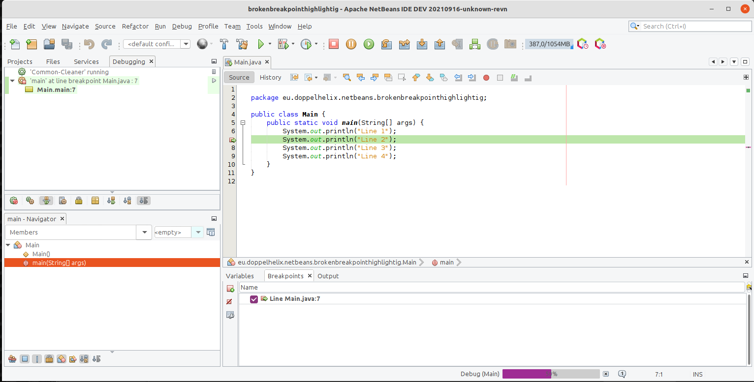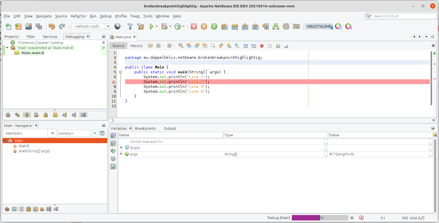 I have a line break point on the line with "Line 2" in it. I exect the IDE