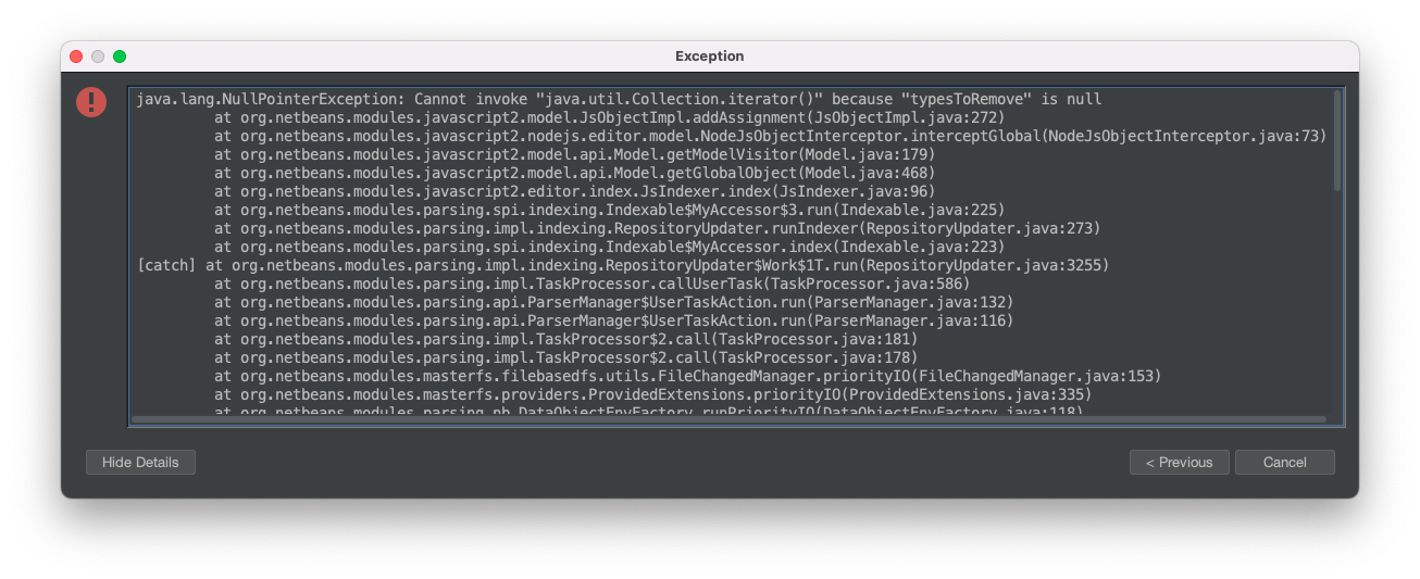 ### Apache NetBeans version Apache NetBeans 13 ### What happened When an exception occurs in "Notifications" it was previously possible to open and report a bug from within the IDE. This however only shows a "< Previous" button without a "Send" button, see screenshot.  ### How to reproduce Cause an exception within the IDE, attempt to send this through the IDE. ### Did this work correctly in an earlier version? Apache NetBeans 12.6 ### Operating System System: Mac OS X version 11.6.5 running on x86_64; UTF-8; en_AU (nb) ### JDK Java: 17.0.1; Java HotSpot(TM) 64-Bit Server VM 17.0.1+12-LTS-39 ### Apache NetBeans packaging Apache NetBeans provided installer ### Anything else _No response_ ### Are you willing to submit a pull request? Yes ### Code of Conduct Yes -- This is an automated message from the Apache Git Service. To respond to the message, please log on to GitHub and use the URL above to go to the specific comment. To unsubscribe, e-mail: [email protected] For queries about this service, please contact Infrastructure at: [email protected] --------------------------------------------------------------------- To unsubscribe, e-mail: [email protected] For additional commands, e-mail: [email protected] For further information about the NetBeans mailing lists, visit: https://cwiki.apache.org/confluence/display/NETBEANS/Mailing+lists