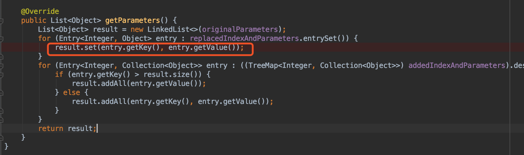 HongJinFeng opened a new issue #3628: Index out of bounds exception when set value of encrypt parameter URL: https://github.com/apache/incubator-shardingsphere/issues/3628 Encrypt-JDBC rewrite wrong sql when sql contain character '('. Besides, it works normally with the version of 4.0.0-RC2. Version of ShardingSphere 4.0.0-RC3 JDBC i use Encrypt-JDBC Steps to reproduce the behavior, such as: SQL to execute, sharding rule configuration, when exception occur etc. 1.MySQL table and encrypt configuration tableļ¼ create table t_demo{ username varchar(20), phone varchar(20), username_encrypt(64), phone_encrypt(64), version timestamp } encrypt configuration spring.shardingsphere.datasource.name = ds spring.shardingsphere.datasource.ds.type = com.alibaba.druid.pool.DruidDataSource spring.shardingsphere.datasource.ds.driver-class-name = com.mysql.jdbc.Driver spring.shardingsphere.datasource.ds.url = xxx spring.shardingsphere.datasource.ds.username = xxx spring.shardingsphere.datasource.ds.password = xxx spring.shardingsphere.encrypt.encryptors.encryptor_aes.type = AES spring.shardingsphere.encrypt.tables.t_demo.columns.username.plainColumn = username spring.shardingsphere.encrypt.tables.t_demo.columns.username.cipherColumn = username_encrypt spring.shardingsphere.encrypt.tables.t_demo.columns.phone.plainColumn = phone spring.shardingsphere.encrypt.tables.t_demo.columns.phone.cipherColumn = phone_encrypt spring.shardingsphere.encrypt.tables.t_demo.columns.phone.encryptor = encryptor_aes spring.shardingsphere.encrypt.tables.t_demo.columns.username.encryptor = encryptor_aes 2.My sql insert into t_demo (username,version,phone) values ('xxx',UNIX_TIMESTAMP(),'xxx') 3 Bug occur when set parameters StandardParameterBuilder.getParameters()