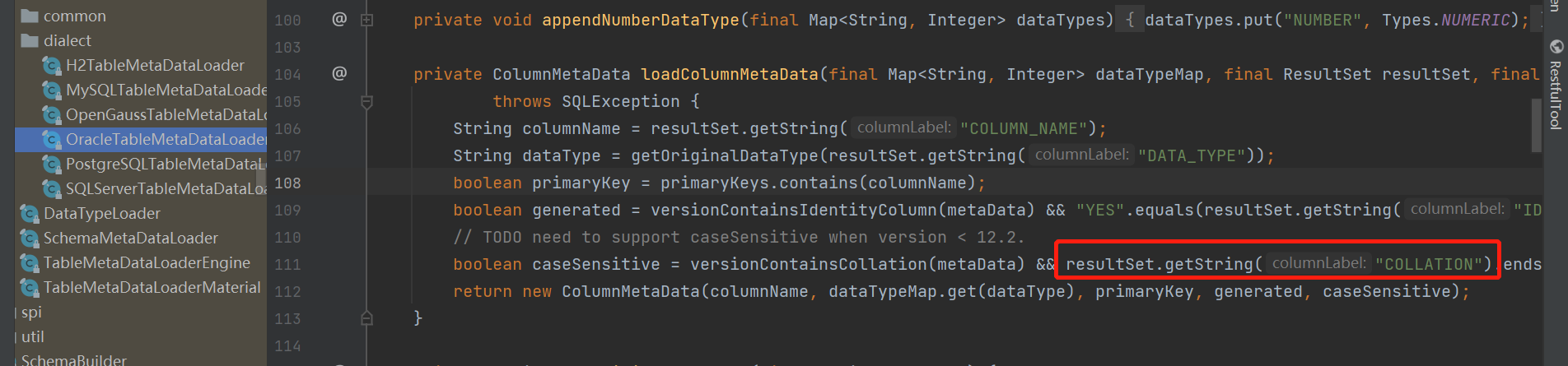 resultSet.getString("COLLATION") can be null,only columns with character