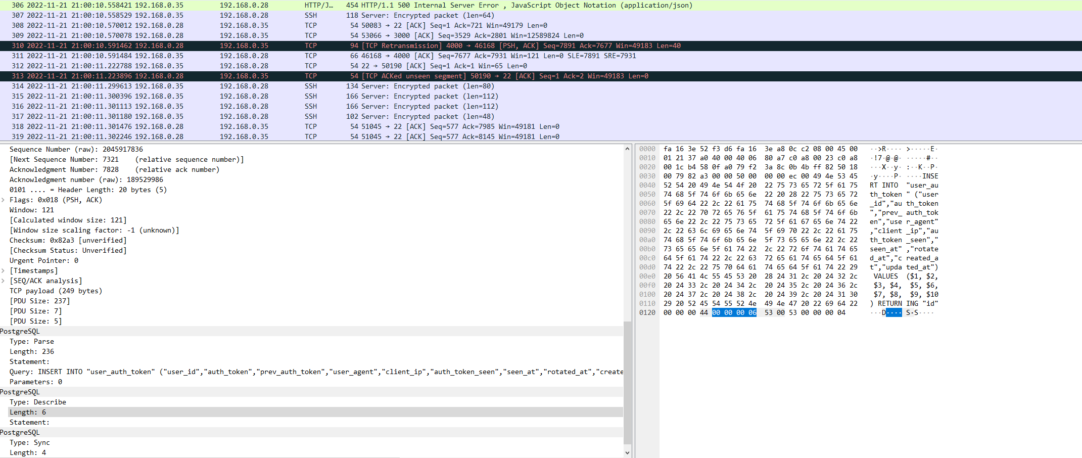 ## Bug Report Testing grafana + shardingsphere + openGauss, grafana setup successfully, but execute ParseInt: parsing \\"\\" when logging in. ### Which version of ShardingSphere did you use? commit id : 85541320133e8049027e922557636fe32c58625c ### Which project did you use? ShardingSphere-JDBC or ShardingSphere-Proxy? proxy ### Expected behavior grafana executes successfully. ### Actual behavior Shardingsphere response an empty string to grafana.  ### Reason analyze (If you can) Shardingsphere seems response "68" to grafana.  The network packet capture results show that the packets replied by ss is no-data.Error   Possible problematic code: ``` org.apache.shardingsphere.proxy.frontend.postgresql.command.query.extended.describe.PostgreSQLComDescribeExecutor#describeInsertStatementByDatabaseMetaData ``` ### Steps to reproduce the behavior, such as: SQL to execute, sharding rule configuration, when exception occur etc. Abnormal SQL: ```sql 2022-11-21 12:21:12.874 grafana grafana 192.168.0.35 281459677792192 0[0:0#0] 0 [BACKEND] LOG: execute <unnamed>: INSERT INTO "user_auth_token" ("user_id","auth_token","prev_auth_token","user_agent","client_ip","auth_token_seen","seen_at","rotated_at","created_at","updated_at") VALUES ($1, $2, $3, $4, $5, $6, $7, $8, $9, $10) RETURNING "id" 2022-11-21 12:21:12.874 grafana grafana 192.168.0.35 281459677792192 0[0:0#0] 0 [BACKEND] DETAIL: parameters: $1 = '1', $2 = '014f8e6cc59e9c86d853ecbf6e6622994d760a5b36ba4f136dc7ca034dcfabfc', $3 = '014f8e6cc59e9c86d853ecbf6e6622994d760a5b36ba4f136dc7ca034dcfabfc', $4 = 'Mozilla/5.0 (Windows NT 10.0; Win64; x64) AppleWebKit/537.36 (KHTML, like Gecko) Chrome/106.0.0.0 Safari/537.36', $5 = '192.168.0.232', $6 = 'f', $7 = '0', $8 = '1669004472', $9 = '1669004472', $10 = '1669004472' ``` ### Example codes for reproduce this issue (such as a github link). -- This is an automated message from the Apache Git Service. To respond to the message, please log on to GitHub and use the URL above to go to the specific comment. To unsubscribe, e-mail: [email protected] For queries about this service, please contact Infrastructure at: [email protected]