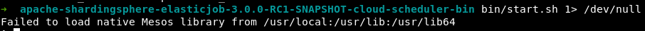 For English only. Mesos error log is printed to stderr. You can run `bin/start.sh 1> /dev/null` to check if it failed to load Mesos library.   ---------------------------------------------------------------- This is an automated message from the Apache Git Service. To respond to the message, please log on to GitHub and use the URL above to go to the specific comment. For queries about this service, please contact Infrastructure at: [email protected]