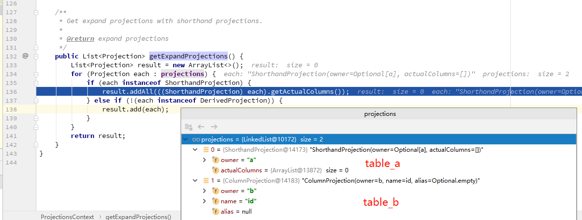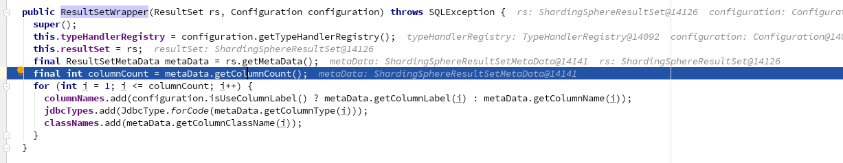 when I used @iblilife's sql: `SELECT a.*, b.id FROM table_a a LEFT JOIN table_b b ON (a.id = b.id)`; and shardingsphere-5.0.0-RC1-SNAPSHOT have the same proplem. when shardingsphere create ShardingSpherePreparedStatement I think the bug may be at SchemaBuilder.java line 70:  when load unconfig tables MeataData,it only init TableMetaData(), but doesn't load table columns, so when doQuery in : ` ->org.apache.shardingsphere.driver.jdbc.core.statement.ShardingSpherePreparedStatement#execute ->org.apache.shardingsphere.driver.jdbc.core.statement.ShardingSpherePreparedStatement#createExecutionContext ->org.apache.shardingsphere.driver.jdbc.core.statement.ShardingSpherePreparedStatement#createLogicSQL ->org.apache.shardingsphere.infra.binder.SQLStatementContextFactory#newInstance ->new SelectStatementContext ->org.apache.shardingsphere.infra.binder.segment.select.projection.engine.ProjectionsContextEngine#createProjectionsContext ->org.apache.shardingsphere.infra.binder.segment.select.projection.engine.ProjectionsContextEngine#getProjections ->org.apache.shardingsphere.infra.binder.segment.select.projection.engine.ProjectionEngine#createProjection(final Collection<SimpleTableSegment> tableSegments, final ShorthandProjectionSegment projectionSegment) ->org.apache.shardingsphere.infra.binder.segment.select.projection.engine.ProjectionEngine#getShorthandColumns ` when get ShorthandColumns, table columns is empty  so after ShardingSpherePreparedStatement#execute, and handle resultSet  ` ->org.apache.ibatis.executor.resultset.DefaultResultSetHandler#handleResultSets ->org.apache.ibatis.executor.resultset.DefaultResultSetHandler#getFirstResultSet ->org.apache.ibatis.executor.resultset.ResultSetWrapper#ResultSetWrapper() ->org.apache.shardingsphere.driver.jdbc.core.resultset.ShardingSphereResultSetMetaData#getColumnCount ->org.apache.shardingsphere.infra.binder.segment.select.projection.ProjectionsContext#getExpandProjections `   in this code, ShorthandProjection actual columns is empty,so after getExpandProjections(), columnCount is only 1   and ResultSet only get one column。 so I think bug maybe at ` ->org.apache.shardingsphere.infra.metadata.schema.builder.SchemaBuilder#appendRemainTables line 70 `  shardingsphere must be load remain table MetaData when System start. ---------------------------------------------------------------- This is an automated message from the Apache Git Service. To respond to the message, please log on to GitHub and use the URL above to go to the specific comment. For queries about this service, please contact Infrastructure at: [email protected]