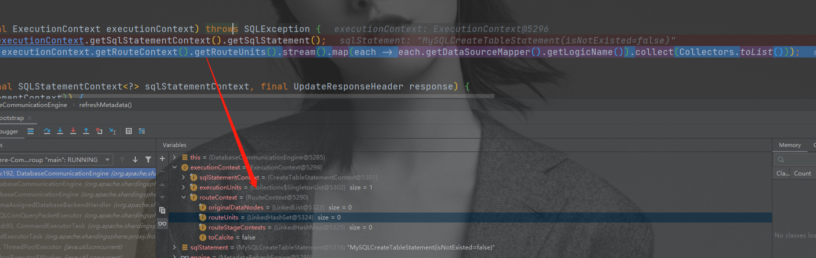 The cause of https://github.com/apache/shardingsphere/issues/9576 is the same as the current problem, which is caused by the RouteContext failing to obtain the expected value. But the current problem occurs in CreateTableStatementSchemaRefresher.refresh:  It is worth noting that this type of problem can also be triggered in the case of a single table. ---------------------------------------------------------------- This is an automated message from the Apache Git Service. To respond to the message, please log on to GitHub and use the URL above to go to the specific comment. For queries about this service, please contact Infrastructure at: [email protected]