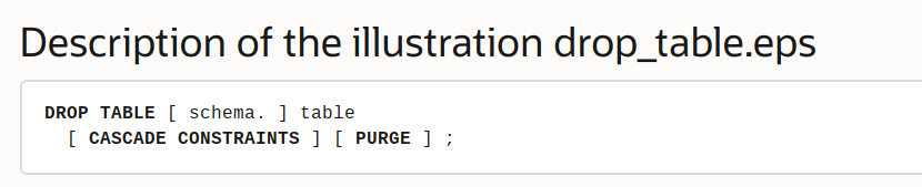 DROP TABLE tableName (CASCADE CONSTRAINTS)? (PURGE)?