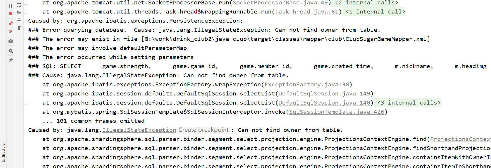- Error querying database. Cause: java.lang.ClassCastException:
