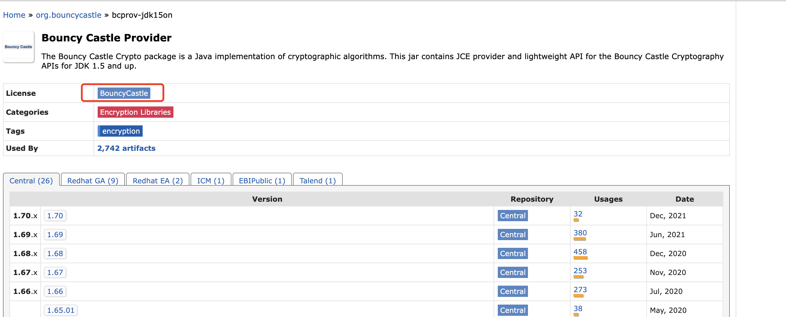 Could you give me a link for MIT license? I found it in maven repository, the license is `BouncyCastle` https://mvnrepository.com/artifact/org.bouncycastle/bcprov-jdk15on  -- This is an automated message from the Apache Git Service. To respond to the message, please log on to GitHub and use the URL above to go to the specific comment. To unsubscribe, e-mail: [email protected] For queries about this service, please contact Infrastructure at: [email protected]