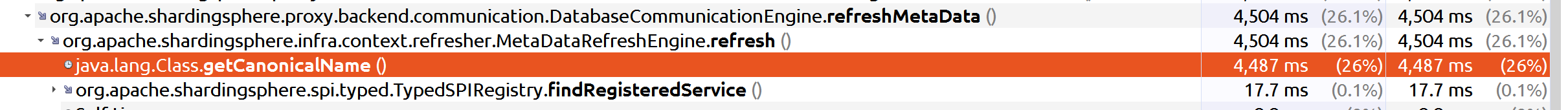 ## Feature Request ### Is your feature request related to a problem? Refer to https://bugs.openjdk.java.net/browse/JDK-8187123 It affects the performance of `org.apache.shardingsphere.infra.context.refresher.MetaDataRefreshEngine`  ### Describe the feature you would like. Replace Class.getCanonicalName with other methods such as Class.getName. -- This is an automated message from the Apache Git Service. To respond to the message, please log on to GitHub and use the URL above to go to the specific comment. To unsubscribe, e-mail: [email protected] For queries about this service, please contact Infrastructure at: [email protected]