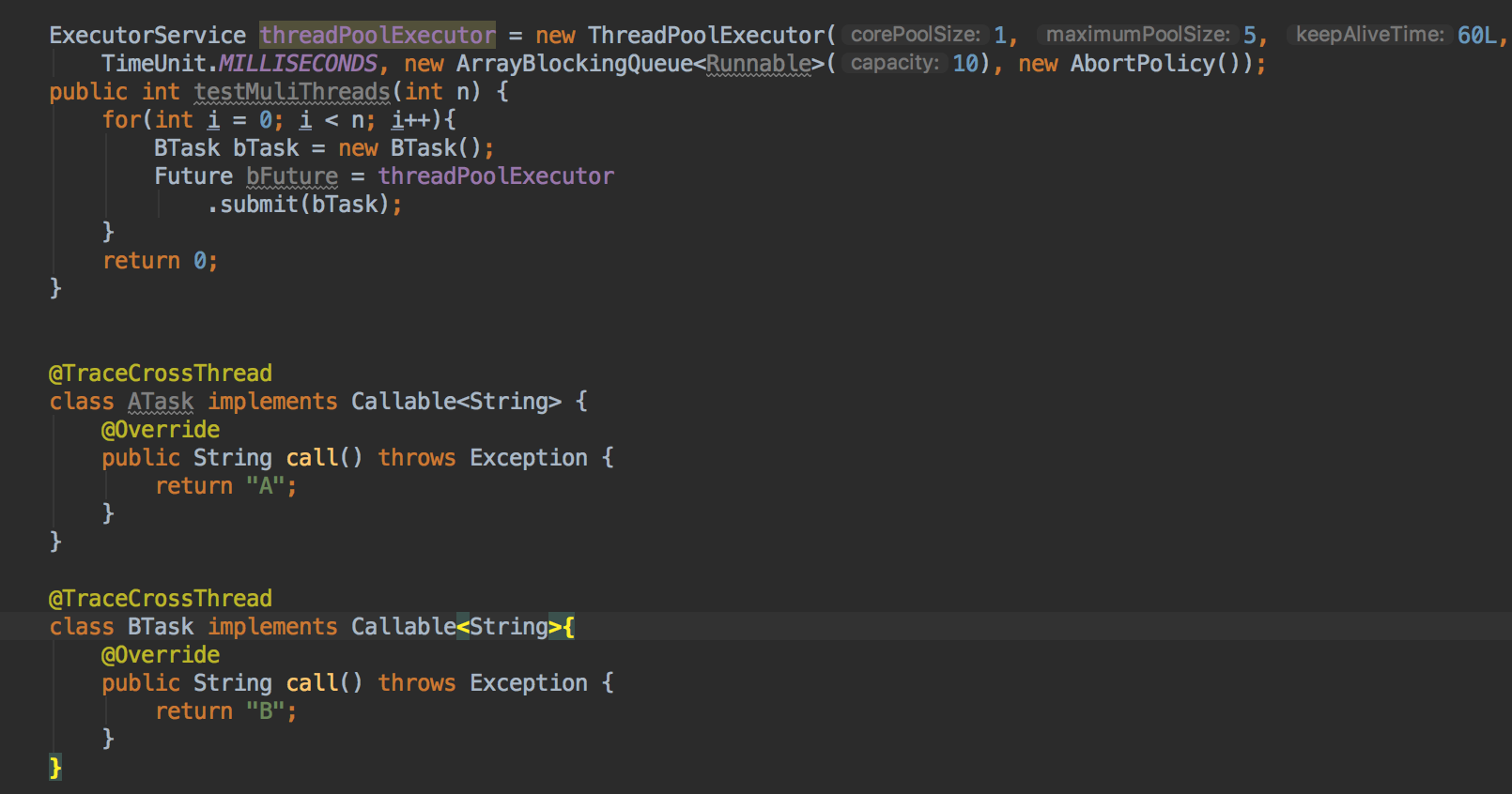 ywf4026 edited a comment on issue #2406: span lost using es storage URL: https://github.com/apache/incubator-skywalking/issues/2406#issuecomment-477498071 @wu-sheng I replay this issue by running tasks in one threadpool code is below  execute the testMuliThreads method repeatedly, the trace gragh may not be consistent (not 100% occurs)