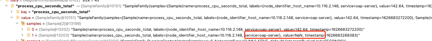 I got the metrics like this by using `otel-collector 0.30.0`, the `NaN` value from otel-collector, and it seems a duplicate and wrong metric. If we don't know why they send this, I agree to filter the NaN value for defensive. -- This is an automated message from the Apache Git Service. To respond to the message, please log on to GitHub and use the URL above to go to the specific comment. To unsubscribe, e-mail: [email protected] For queries about this service, please contact Infrastructure at: [email protected]