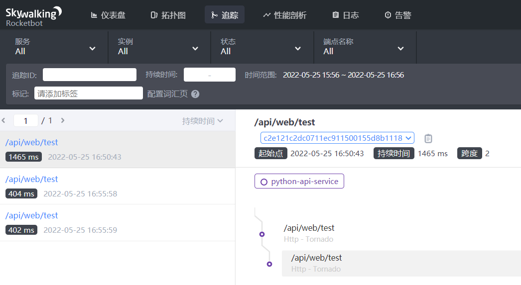 ### Search before asking - [X] I had searched in the [issues](https://github.com/apache/skywalking/issues?q=is%3Aissue) and found no similar issues. ### Apache SkyWalking Component Python Agent (apache/skywalking-python) ### What happened I started my tornado service and sent two identical requests, but only one link?  ### What you expected to happen There is a problem with the link ### How to reproduce There is my code. tornado==6.1 `import asyncio from skywalking import agent, config from tornado.web import Application, RequestHandler, url from tornado.httpserver import HTTPServer from tornado.ioloop import IOLoop class SwTornadoHandler(RequestHandler): async def get(self): await asyncio.sleep(0.4) self.write({"ok": 1}) if __name__ == '__main__': app = Application([ url(r"/api/web/test", SwTornadoHandler) ]) http_server = HTTPServer(app, xheaders=True) http_server.bind(9696) http_server.start(2) config.init( protocol="http", service_instance=f"127.0.0.1:9696", collector_address="127.0.0.1:12800", service_name="python-api-service") config.disable_plugins = ["sw_falcon", "sw_psycopg2", "sw_pyramid", "sw_sanic"] agent.start() IOLoop.current().start() ` ### Anything else In skywalking/trace/context.py . I modified the code and found it normal, but I don't know why. source code: ` def _spans_dup(): spans = __spans.get()[:] __spans.set(spans) return spans` modified code: ` def _spans_dup(): # spans = __spans.get()[:] # __spans.set(spans) # # return spans return __spans.get() ` ### Are you willing to submit PR? - [X] Yes I am willing to submit a PR! ### Code of Conduct - [X] I agree to follow this project's [Code of Conduct](https://www.apache.org/foundation/policies/conduct) -- This is an automated message from the Apache Git Service. To respond to the message, please log on to GitHub and use the URL above to go to the specific comment. To unsubscribe, e-mail: [email protected] For queries about this service, please contact Infrastructure at: [email protected]