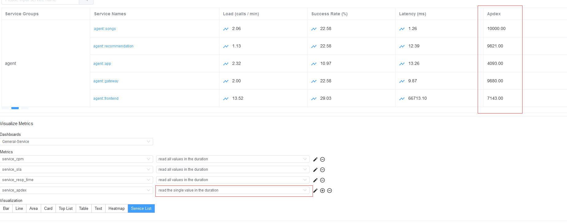 ### Search before asking - [X] I had searched in the [issues](https://github.com/apache/skywalking/issues?q=is%3Aissue) and found no similar issues. ### Apache SkyWalking Component UI (apache/skywalking-booster-ui) ### What happened Wrong data format of Apdex in service list panel if metric type is `readmetricsvalue`.  ### What you expected to happen The actual value should be divided by 10000. ### How to reproduce In edit mode, change metric type of service_apdex from `readmetricsvalues` to `readmetricsvalue` ### Anything else _No response_ ### Are you willing to submit PR? - [X] Yes I am willing to submit a PR! ### Code of Conduct - [X] I agree to follow this project's [Code of Conduct](https://www.apache.org/foundation/policies/conduct) -- This is an automated message from the Apache Git Service. To respond to the message, please log on to GitHub and use the URL above to go to the specific comment. To unsubscribe, e-mail: [email protected] For queries about this service, please contact Infrastructure at: [email protected]