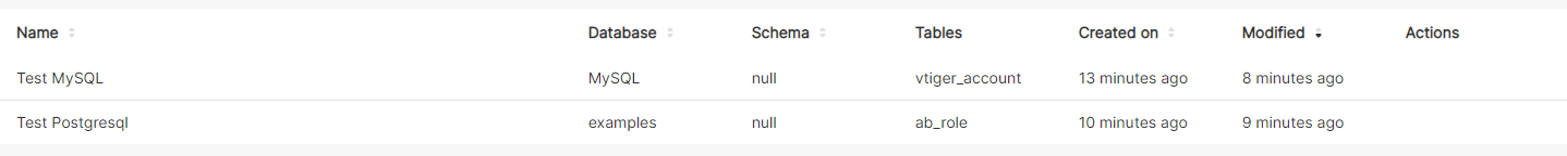 Thanks @zhaoyongjie I have tried also with the pre installed postgresql database "examples" but it still sets the schema to NULL:  Current Database settings: Default PSQL:  MySQL:  In the currently installed version we had the same problem, but going to edit, we could set correctly the schema:  What log can I check to better verify this issue ? -- This is an automated message from the Apache Git Service. To respond to the message, please log on to GitHub and use the URL above to go to the specific comment. To unsubscribe, e-mail: [email protected] For queries about this service, please contact Infrastructure at: [email protected] --------------------------------------------------------------------- To unsubscribe, e-mail: [email protected] For additional commands, e-mail: [email protected]