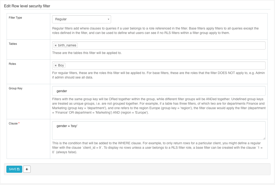 ### SUMMARY This PR adds two new fields to Row Level Security Filters (RLS): - **Filter type**: Currently RLS filters only apply additional filters if a user belongs to a role referenced by a RLS filter. This can cause leakage of sensitive data, as a person that doesn't satisfy any RLS filters will see all data (=no RLS filters applied). To fix this, a base filter type is added that can be used to apply a base filter for all users. This is especially useful for cases where by default we don't want to show any rows if a user doesn't belong to any roles that have RLS filters attached to them. In this case we can set a base filter of `1 = 0`, which will always be false. - **Grouping key**: currently RLS filters are always additive. This can be problematic in cases where a user belongs to many roles that are exclusive. If, for instance, a person belongs to departments A and B and there is a RLS filter for both departments, the user won't see any rows, as the where clause will be `department = 'A' AND department = 'B'`. For these cases a group key `department` can be assigned to both RLS filters, after which they are ORed together. Example: - We want all data in a table to be visible to the Admin role - For regular users, we should only show 1 year of data - For researchers, 10 years of data will be shown - Data for domestic region is available to all users - Data for foreign region is restricted to management only RLS filters: - Filter 1: type: Base, excluded roles: Admin, grouping key: "duration", clause: "date > now - 1 year" - Filter 2: Type: Regular, roles: Research, grouping key: "duration", clause: "date > now - 10 year" - Filter 3: Type: Base, excluded roles: Admin, grouping key: "region", clause: "region = 'domestic'" - Filter 4: Type: Regular, roles: Management, grouping key: "region", clause: "region = 'foreign'" This would render the following extra clauses: - Admin user: None - No roles: `(date > now - 1 year) AND (region = 'domestic')` - Research: `(date > now - 1 year OR date > now - 10 year) AND (region = 'domestic')` - Management: `(date > now - 1 year) AND (region = 'domestic' OR region = 'foreign')` - Management + Research: `(date > now - 1 year OR date > now - 10 year) AND (region = 'domestic' OR region = 'foreign')` This change is backwards compatible, meaning that current filters will continue to function as before. ### SCREENSHOTS  ### TEST PLAN CI + new tests ### ADDITIONAL INFORMATION <!--- Check any relevant boxes with "x" --> <!--- HINT: Include "Fixes #nnn" if you are fixing an existing issue --> - [ ] Has associated issue: - [ ] Changes UI - [ ] Requires DB Migration. - [ ] Confirm DB Migration upgrade and downgrade tested. - [ ] Introduces new feature or API - [ ] Removes existing feature or API ---------------------------------------------------------------- This is an automated message from the Apache Git Service. To respond to the message, please log on to GitHub and use the URL above to go to the specific comment. For queries about this service, please contact Infrastructure at: [email protected] --------------------------------------------------------------------- To unsubscribe, e-mail: [email protected] For additional commands, e-mail: [email protected]