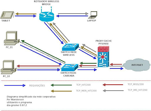 O meu diagrama diferencia do seu na situação que eu não tenho um switch wireless vai tudo no switch rede cabeada e tenho PC e laptop no roteador wireless bridge.