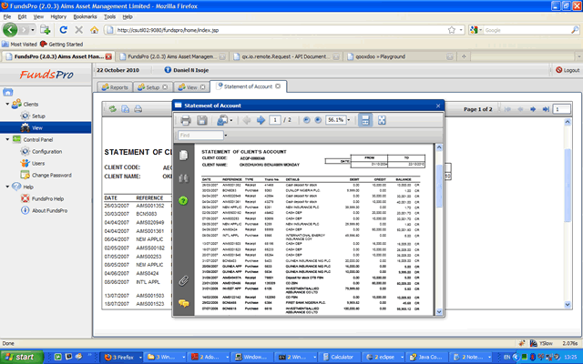 Cheers, Fritz On Fri, 22 Oct 2010, pbkofon wrote: > > Hello everyone, > > I'm not sure if it's appropriate to post this here because I know that there > are plenty of Qooxdoo applications out there in production and mine > certainly isn't the first or even the most complex. My main reason, however, > is just to show (especially to people who have just started using the > toolkit) that a lot can be achieved with it. New users to a framework often > want to first do a small prototype before creating a real application with > it in order to test the waters. In my case, I didn't. I took a ?risk? with > Qooxdoo and I must say that it was worth it. > > I discovered Qooxdoo entirely by accident some six months ago. Around then, > a client had asked if I could ?webify? an existing application to enable > staff to perform some tasks and run reports remotely. Long story short, I > decided to use Qooxdoo to build the application. I wasn't afraid that I > didn't know the first thing about Qooxdoo because if I had to abandon it > along the way, I could easily fall back to using my own ?home-grown? > JavaScript toolkit. Although, I was concerned about whether I'd be able to > replicate some of the features (especially a Data Grid widget with > pagination and an Auto-suggest field) that I had in mine. > > It took a few days, with the help of the excellent API docs, to get familiar > with Qooxdoo. I joined the forum and asked a few newbie questions ? which, > thankfully, I got answers to. The forum is alive! > > After another 6 weeks or so, I delivered the first version. I made it clear > to the client that my solution was different from the sort of web > application that they were used to ? one that delivered content via a series > of pages. I explained that this was a self-contained application, the > JavaScript files and images get downloaded and are cached, making subsequent > downloads unnecessary, unless content changed. And while the application is > running, you only get data (in JSON format) ? no HTML, no XML, just plain > text. Lightweight and fast! > > About the Application > > The application is made up 43 JavaScript class files, most of which were > designed for reuse. Some of them extend widgets provided by Qooxdoo, e.g. > the Auto-suggest widget which extends qx.ui.form.ComboBox. The final > JavaScript file is slightly over 1MB. I've had to enable compression on the > server (Apache Tomcat, the application is backed by Servlets and an > index.jsp file). Compressed, it comes down to around 300Kb. I'm also caching > aggressively to eliminate requests to the server for content that hasn't > changed. > > The application on the server embeds a reporting engine (Eclipse BIRT) and > so I had to provide an interface for running and printing reports. Cool. > > Some Screen Shots > > http://www.creektownsw.com/applications/fundspro/screenshots/tab-reports.png > http://www.creektownsw.com/applications/fundspro/screenshots/tab-datagrid.png > http://www.creektownsw.com/applications/fundspro/screenshots/report-pdf.png > http://www.creektownsw.com/applications/fundspro/screenshots/multi-tab-form.png > http://www.creektownsw.com/applications/fundspro/screenshots/login.png > http://www.creektownsw.com/applications/fundspro/screenshots/auto-suggest-combobox.png > > > Final Words > > The client was eager to launch the solution. I was more eager to test > Qooxdoo. Although I was satisfied with tests we had done internally, I > couldn't wait to see how it would perform in the real world ? different > browsers, different platforms, slow internet connections, etc. > > Long story short (again), the client is very happy with the solution. And > I'm thinking of porting an existing application (with over 200 JSP files) to > Qooxdoo. I'll see how that pans out. > > -- > View this message in context: > http://qooxdoo.678.n2.nabble.com/First-Qooxdoo-Application-in-production-tp5663441p5663441.html > Sent from the qooxdoo mailing list archive at Nabble.com. > > ------------------------------------------------------------------------------ > Nokia and AT&T present the 2010 Calling All Innovators-North America contest > Create new apps & games for the Nokia N8 for consumers in U.S. and Canada > $10 million total in prizes - $4M cash, 500 devices, nearly $6M in marketing > Develop with Nokia Qt SDK, Web Runtime, or Java and Publish to Ovi Store > http://p.sf.net/sfu/nokia-dev2dev > _______________________________________________ > qooxdoo-devel mailing list > [email protected] > https://lists.sourceforge.net/lists/listinfo/qooxdoo-devel -- Oetiker+Partner AG tel: +41 62 775 99 03 (direct) Fritz Zaucker +41 62 775 99 00 (switch board) Aarweg 15 +41 79 675 06 30 (mobile) CH-4600 Olten fax: +41 62 775 99 05 Schweiz web: www.oetiker.ch ------------------------------------------------------------------------------ Nokia and AT&T present the 2010 Calling All Innovators-North America contest Create new apps & games for the Nokia N8 for consumers in U.S. and Canada $10 million total in prizes - $4M cash, 500 devices, nearly $6M in marketing Develop with Nokia Qt SDK, Web Runtime, or Java and Publish to Ovi Store http://p.sf.net/sfu/nokia-dev2dev _______________________________________________ qooxdoo-devel mailing list [email protected] https://lists.sourceforge.net/lists/listinfo/qooxdoo-devel