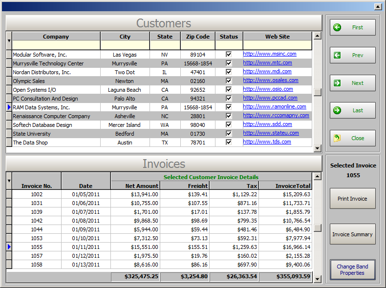 Sheesh. I am so impatient. Jan p.s. I am joking. Thanks to you and RBG9DC -----Original Message----- From: "A. Razzak Memon" <[email protected]> To: [email protected] (RBASE-L Mailing List) Date: Thu, 14 Apr 2011 02:00:00 -0400 Subject: [RBASE-L] - Tip of the Day - Dynamically Changing Band List Properties Thursday, April 14, 2011 Tip of the Day - Dynamically Changing Band List Properties Product: R:BASE eXtreme 9.1 (32/64) Update.: 3 Build..: 9.1.3.10417 or higher http://www.rupdates.com Section: Forms Control: Enhanced DB Grid (Band List) Did you know that you can dynamically change the properties of Enhanced DB Grid Band List(s), including the CAPTION and FONT. Now you may use the following GETPROPERTY/PROPERTY commands: -- To Obtain Band Count in Enhanced DB Grid GETPROPERTY ComponentID BANDS->COUNT vValue -- To obtain Current Caption for a Given Band in Enhanced DB Grid GETPROPERTY ComponentID BANDS[n]->CAPTION vValue -- To Dynamically Change Caption for a Given Band in Enhanced DB Grid PROPERTY ComponentID BANDS[n]->CAPTION value -- To Dynamically Change Font Name for Band(s) in Enhanced DB Grid PROPERTY ComponentID BANDS->FONT_NAME value -- To Change Font Color for Band(s) in Enhanced DB Grid PROPERTY ComponentID BANDS->FONT_COLOR Value -- To Dynamically Change Font Size for Band(s) in Enhanced DB Grid PROPERTY ComponentID BANDS->FONT_SIZE value -- To Dynamically Change Font Height for Band(s) in Enhanced DB Grid PROPERTY ComponentID BANDS->FONT_HEIGHT value -- To Dynamically Change Font Bold Style for Band(s) in Enhanced DB Grid PROPERTY ComponentID BANDS->FONT_BOLD value Values TRUE/FALSE -- To Dynamically Change Font Italic Style for Band(s) in Enhanced DB Grid PROPERTY ComponentID BANDS->FONT_ITALIC value Values TRUE/FALSE -- To Dynamically Change Font Strikeout Style for Band(s) in Enhanced DB Grid PROPERTY ComponentID BANDS->FONT_STRIKEOUT value Values TRUE/FALSE -- To Dynamically Change Font Underline Style for Band(s) in Enhanced DB Grid PROPERTY ComponentID BANDS->FONT_UNDERLINE value Values TRUE/FALSE -- Example 01 -- Database: RRBYW17 -- Form Name: RBG91_EnhancDBGrd_BandList_Properties -- Control: Enhanced DB Grid -- Related Tables: Customers, InvoiceHeader -- Component ID: DBGrid_Customers, DBGrid_Invoices -- Band List Count: 1 -- Bit Button: [Change Band Properties] -- Custom EEP: PROPERTY DBGrid_Invoices BANDS[0]->CAPTION 'Selected Customer Invoice Details' PROPERTY DBGrid_Invoices BANDS->FONT_NAME Tahoma PROPERTY DBGrid_Invoices BANDS->FONT_COLOR GREEN PROPERTY DBGrid_Invoices BANDS->FONT_SIZE 8 PROPERTY DBGrid_Invoices BANDS->FONT_BOLD TRUE RETURN For your viewing pleasure .... Before: http://www.razzak.com/tips/Enhanced_DB_Grid_BandList_Before.png After: http://www.razzak.com/tips/Enhanced_DB_Grid_BandList_After.png Have fun! Very Best R:egards, Razzak.