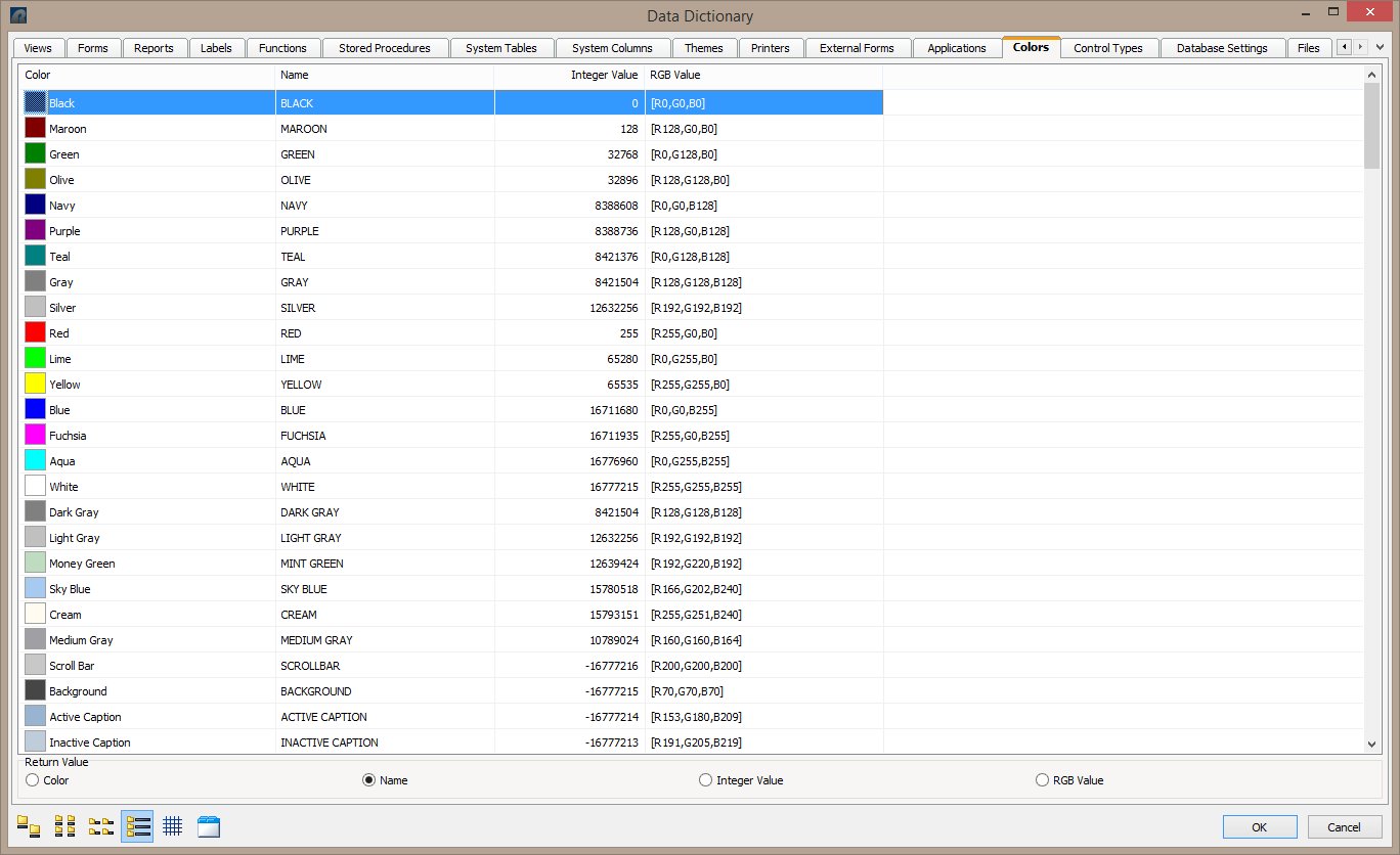 Dan Goldberg -----Original Message----- From: [email protected] [mailto:[email protected]] On Behalf Of A. Razzak Memon Sent: Tuesday, October 27, 2015 6:50 AM To: Dan Goldberg Subject: [RBASE-L] - Re: variable lookup list view At 09:39 AM 10/27/2015, Dan Goldberg wrote: >Thanks I will give that a go. Here's what you should see ... http://www.razzak.com/tips/DataDictionary_F3_Key.jpg Have fun! Razzak >-----Original Message----- >From: [email protected] [mailto:[email protected]] On Behalf Of A. >Razzak Memon >Sent: Monday, October 26, 2015 11:37 AM >To: Dan Goldberg >Subject: [RBASE-L] - Re: variable lookup list view > >At 01:50 PM 10/26/2015, Dan Goldberg wrote: > > >Is there a list of the colors we can use or is there a way to use > >custom colors? > > >Did you know that you can use the [F3] Data Dictionary Key to view and >retrieve value (Return Value) as Color, Name, Integer Value, or RGB Value? > >Here's how ... > >Data Dictionary [F3] > Colors .... > >Notice a well-organized list of Colors, Names, Integer, as well as RGB Values. > >At the bottom of the list, check the radio button to retrieve >appropriate value. > >You may also use your own custom defined colors as RGB [Rx,Gx,Bx] value >as well. > >That's all there is to it! > >Very Best R:egards, > >Razzak.
