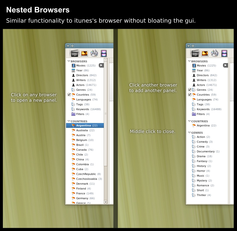 On 11/02/2011, at 9:40 AM, Yuzem wrote: > Yes, in my application I have in the sidebar all those sections (movies, > years, tags, keywords, actors, directors, writers, etc...) and I count each > one, how many movies, how many years, etc... > It isn't very slow if I update only one item but the problem is when I have > to update the entire list, this uses a lot of cpu and takes some time and I > have to do it every time a movie is added. > http://3.bp.blogspot.com/_EbNPUgfUDXs/TIpif4U1III/AAAAAAAAA2A/YFSGOAdpOGA/s1600/nested-brosers.jpg > Here there is an old screenshot from the sidebar.