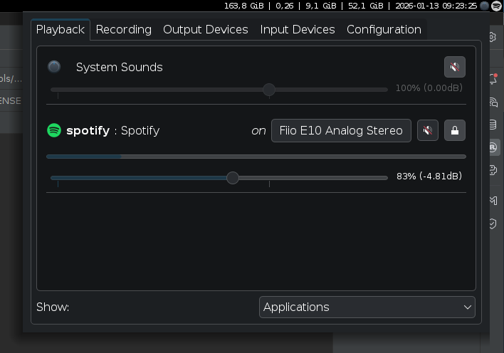 In the following screenshot you can see pavucontrol-qt running as a tray