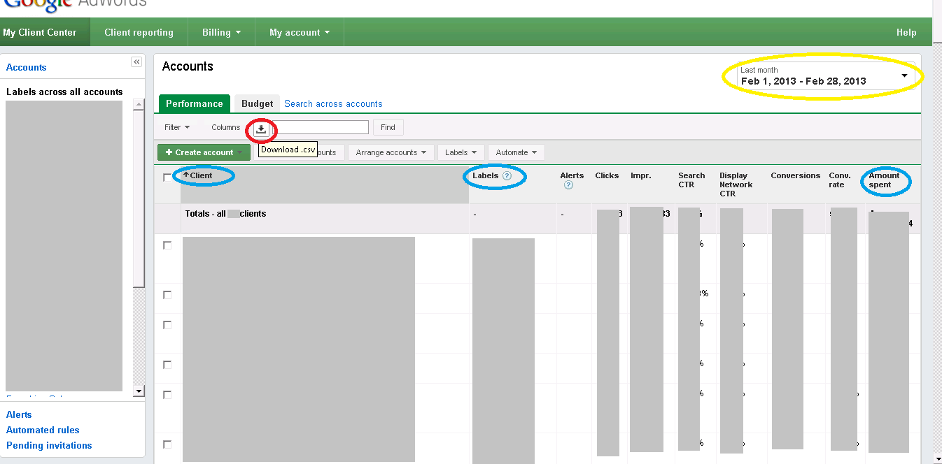 I know this is wrong but I want someone to show me one simple API call. I'm developing application for my client, that does a lot of things not related to adwords or google at all, but it still needs to be able to get some info. What I need is to emulate "Download .csv" button [1] from "My Client Center -> Accounts -> Performance" screen. Ideally I want to have a function that accepts start/end date [2], makes needed API call(calls?) via PHP API Lib (or without this lib) and returns appropriate report (in fact I need 3 colums only [3]). I simply have not time nor desire to dig trough all the API and PHP lib documentation. It's to complex and big and I just need one API call. I hope someone understand me and can do this for me as favor. [1] Marked with red on screen [2] Marked with yellow on screen [3] Marked with blue on screen Thank you. p.s. I prefer PHP but accept any language. <https://lh4.googleusercontent.com/-23PJesTepH8/UUO_cPq4DaI/AAAAAAAAAA0/TuNp20A3mbc/s1600/screen.png> -- -- =~=~=~=~=~=~=~=~=~=~=~=~=~=~=~=~=~=~=~=~=~=~=~=~ Also find us on our blog and discussion group: http://adwordsapi.blogspot.com http://groups.google.com/group/adwords-api =~=~=~=~=~=~=~=~=~=~=~=~=~=~=~=~=~=~=~=~=~=~=~=~ You received this message because you are subscribed to the Google Groups "AdWords API Forum" group. To post to this group, send email to [email protected] To unsubscribe from this group, send email to [email protected] For more options, visit this group at http://groups.google.com/group/adwords-api?hl=en --- You received this message because you are subscribed to the Google Groups "AdWords API Forum" group. To unsubscribe from this group and stop receiving emails from it, send an email to [email protected]. For more options, visit https://groups.google.com/groups/opt_out.