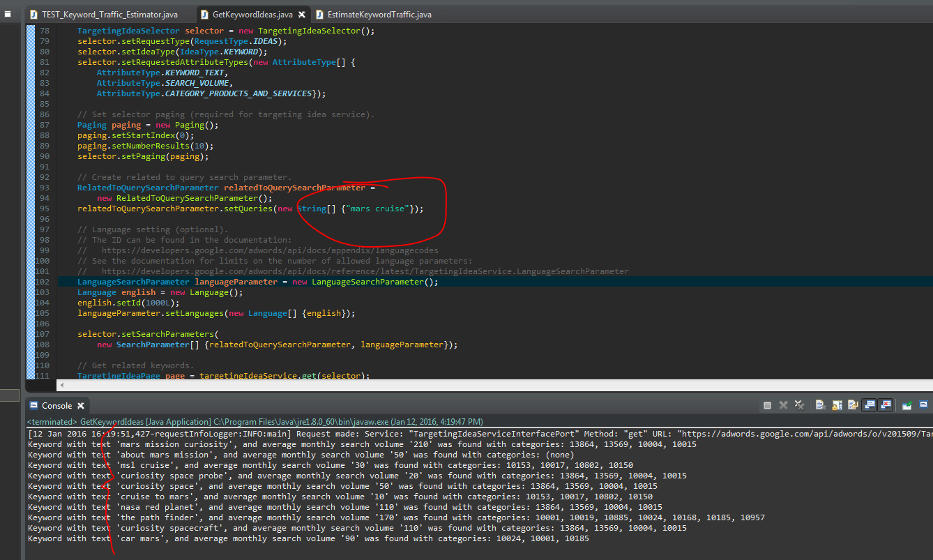 Dear Ray, here the screenshot, i am using the java api and the example getKeywordIdeas.