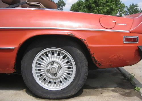 It is located off New Jersey Turnpike Exit 7. I have owned the car since around 2002 and have put a bunch of money in it over the years but it has not been driven or started in over 3 years. The two back tires have been flat for the last 12 months. Here are a bunch of photos I took about 1 1/2 years ago. The rust behind the doors seems to have gotten worse. http://i205.photobucket.com/albums/bb275/alfalauda/Alfa1.jpg http://i205.photobucket.com/albums/bb275/alfalauda/Alfa10.jpg http://i205.photobucket.com/albums/bb275/alfalauda/Alfa11.jpg http://i205.photobucket.com/albums/bb275/alfalauda/Alfa12.jpg http://i205.photobucket.com/albums/bb275/alfalauda/Alfa14.jpg http://i205.photobucket.com/albums/bb275/alfalauda/Alfa15.jpg http://i205.photobucket.com/albums/bb275/alfalauda/Alfa2.jpg http://i205.photobucket.com/albums/bb275/alfalauda/Alfa23.jpg http://i205.photobucket.com/albums/bb275/alfalauda/Alfa21.jpg http://i205.photobucket.com/albums/bb275/alfalauda/Alfa3.jpg http://i205.photobucket.com/albums/bb275/alfalauda/Alfa17.jpg http://i205.photobucket.com/albums/bb275/alfalauda/Alfa18.jpg -- to be removed from alfa, see http://www.digest.net/bin/digest-subs.cgi or email "unsubscribe alfa" to [email protected]