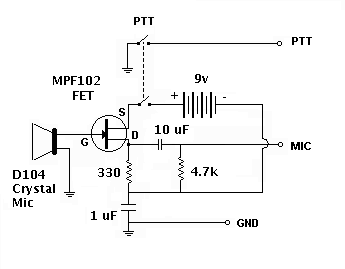 http://www.wd8das.net/D104-FETbuffer.gif The 4.7k resistor in the drawing can be changed to match other rig input impedances. Steve WD8DAS [email protected] http://www.wd8das.net/ --------------------------------------------------------- Radio is your best entertainment value. --------------------------------------------------------- ______________________________________________________________ Our Main Website: http://www.amfone.net AMRadio mailing list Searchable Archives: http://www.mail-archive.com/[email protected]/ List Rules (must read!): http://w5ami.net/amradiofaq.html List Home: http://mailman.qth.net/mailman/listinfo/amradio Post: [email protected] To unsubscribe, send an email to [email protected] with the word unsubscribe in the message body. This list hosted by: http://www.qsl.net Please help support this email list: http://www.qsl.net/donate.html