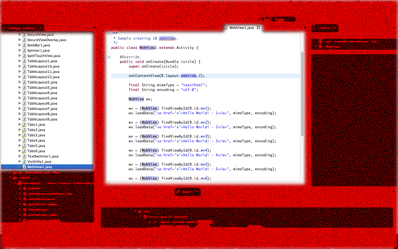 It sounds like you will want to look at the file WebView1.java in the apidemos sample.
