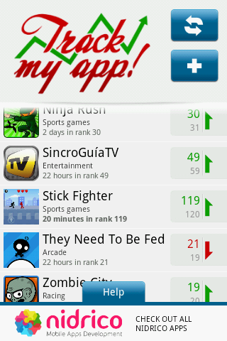 <https://lh6.googleusercontent.com/-HV8-qYuU-K0/TmnLaTqvHyI/AAAAAAAABIc/OVMIZysNpGg/feature_graphic_trackmyapp.png> *Track My App* is designed for developers who have published apps in the Android Market and want to keep track of these within the rankings by category. There are sections on the Android Market where you can view the * top* of free and paid apps in each category. These *tops* show the 480 most popular applications in their category throughout 20 pages of results. <https://lh6.googleusercontent.com/-Lwl5fiX5LF8/TmnMT0RhTCI/AAAAAAAABIk/HLVvTw5FHzg/Market.png> *Track My App* will help you to analyse the evolution of your applications based on their rankings. <https://lh6.googleusercontent.com/-oSDIPwZReGQ/TmnNrEDAC8I/AAAAAAAABIs/8Wn8ewK7TWs/trackmyapp.png> To download this app, search on the Android Market the keyword *Trackmyapp *or click *here*<https://market.android.com/details?id=com.nidrico.apps.trackmyapp> . You also can use the following QR-Code. <https://lh3.googleusercontent.com/-rAWh9ISZdPg/TmnPhnFvpqI/AAAAAAAABI0/W_le-PgHpnk/s400/qrcode_trackmyapp.png> We hope the application is useful and receives a lot of 5 stars ratings. ;) Although the application version is 1.1, the stage of development is still in beta. We're seeking ideas, advices, critics, feedbacks and different points of view. Feel free to contact with us through *[email protected]* Thanks in advance! -- You received this message because you are subscribed to the Google Groups "Android Discuss" group. To view this discussion on the web visit https://groups.google.com/d/msg/android-discuss/-/oJX23boF-ygJ. To post to this group, send email to [email protected]. To unsubscribe from this group, send email to [email protected]. For more options, visit this group at http://groups.google.com/group/android-discuss?hl=en.