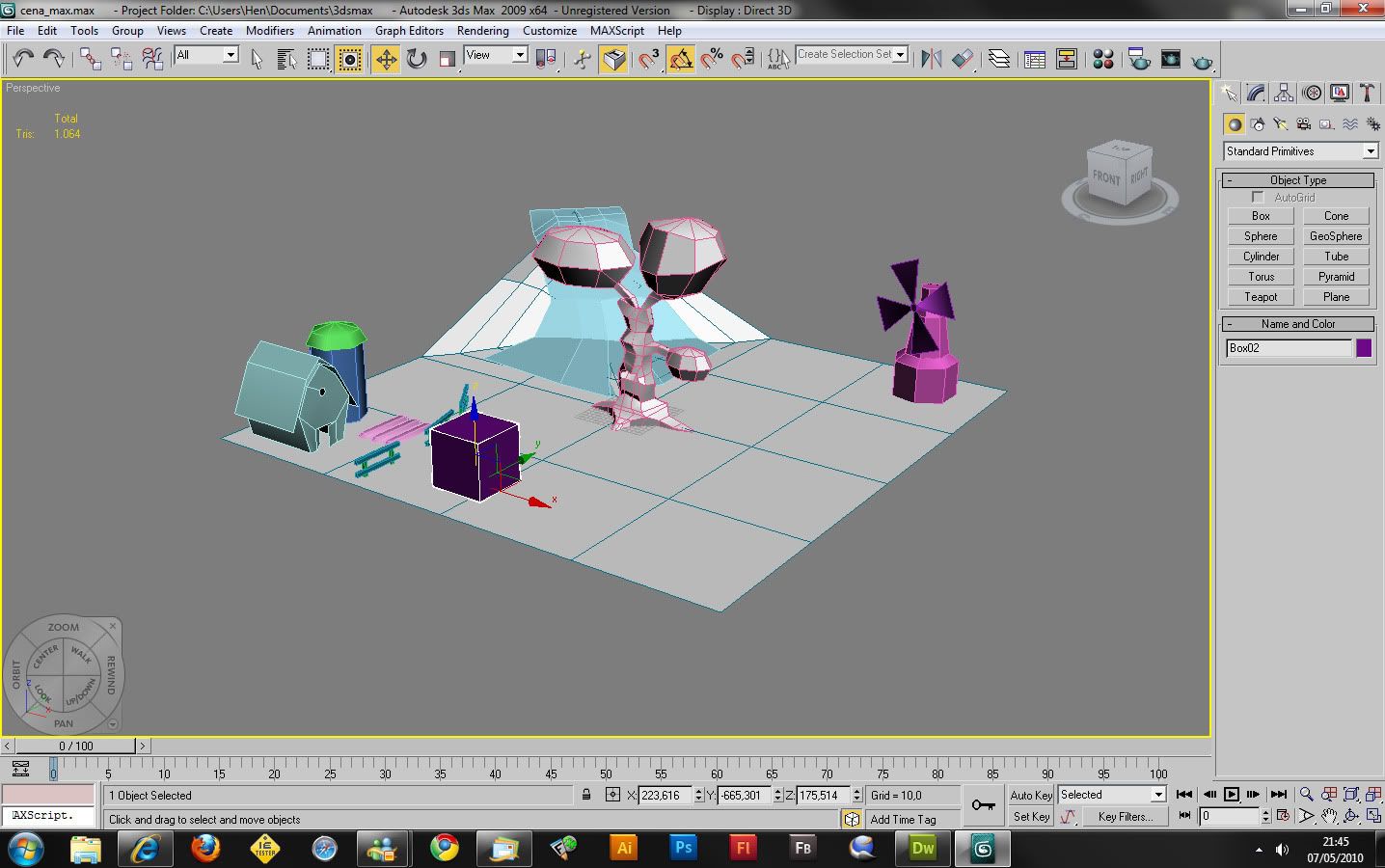 1) I made an animation on Max, changing the object position, also