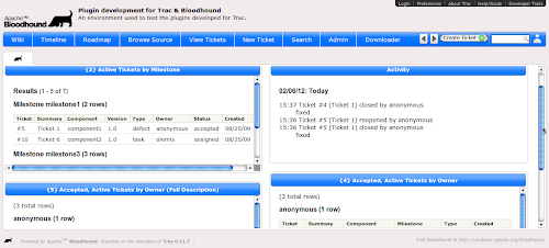 :) > > On 6 February 2012 22:02, Olemis Lang <[email protected]> wrote: > [...] > > > > > Today I've managed to make some decent progress regarding the > > dashboard . Please review this album [1]_ for further details ;) . > > > > Tomorrow I'll be able to be more verbose and explain «the whole thing» > > ... but in the meantime there you have it . > > ;) > > ... well let's start by explaining the whole thing ;) The architecture of the dashboard relies on the following key elements : 1- widgets (IWidgetProvider) : which are small pieces of UI display content provided by Trac components (... or maybe other sources ...) * Widgets are the intermediate step between WikiMacros (the former may be rendered anywhere whereas the later are limited to «fields» supporting WikiFormatting) and gadgets (which may be hosted somewhere else, need an underlaying container relying on an API not coupled to the Trac system) * they may be parameterized ; e.g. at present there are two widgets , activity widget displaying timeline events and tickets report widget displaying report results . In the later case one such parameter is report ID . So in order to make this look like in the mockups the only thing that's needed is to include in default Bloodhound installation one such report outputting ticket data like shown in there and configure report ID so as to render the widget (piece of cake ... so don't feel bad if those reports ain't render your data the way you want , you are just one SQL report away ;) * Widget contents are rendered inside a box making it look like iGoogle . Appearance is controlled by by jQuery UI theme [1]_ . Of course this might change , it's just something for you to see ;) * The first milestone may be to implement widgets for different parts of core Trac system (roadmap view , search results , repository graph ...) 2- layouts (no extension point interface at the moment) : which allow for customizing how widgets will be arranged (e.g. one column , two columns ... ;) * At present I'm using YUI grids CSS to get this done (considering the fact that I'm more familiar with it and wanted to get things working ASAP ;) . Nonetheless it's not mandatory to use them . The idea is that it will be possible to use any similar lib you want once pluggable layout providers will come to life as they'll determine what Genshi template will be used to render the dashboard 3- the glue layer between , mainly consisting of a mechanism to specify where to locate each widget according to the layout in use , and the parameters needed in each case . * This will provide enough flexibility in dashboard design . * At present this does not exist at all so I still look forward for great ideas to get this done . In the case of two columns dashboard [2]_ in screenshots , this looks like a simple {{{ #!py widgets_spec = [ { 'c' : TicketReportWidget(self.env), 'args' : ['TicketReport', ctx, {'args' : {'id' : 3}}] }, { 'c' : TimelineWidget(self.env), 'args' : ['Timeline', ctx, {'args' : {'max' : 10}}] }, { 'c' : TicketReportWidget(self.env), 'args' : ['TicketReport', ctx, {'args' : {'id' : 5}}] }, { 'c' : TicketReportWidget(self.env), 'args' : ['TicketReport', ctx, {'args' : {'id' : 4}}] }, ] }}} 4- ... I forgot ... I'm too old , not enough coffee, ... :$ > > Feedback is welcome ... > > > > Those screenshots look really good. Nice work. > thnx :) > > I know how hard it can be to match a designers vision. ... well , so far I was just experimenting and figuring out how the underlying architecture should look like . Another important goal was to be able to show you all something as soon as possible ;) . Now that there's something out there to play with , I think we can focus on 1- Figure out how to let the code see the daylight ;) so that more people will be able to do things in Apache svn repos ;) 2- Improve what we already have 3- Develop what's missing in there (see above ;) 4- Improve and adapt the graphical design of dashboard and theme ... 5- ... etc, etc, etc ... ... so at this point , no worries if this doesn't look like the mockups yet . Designers your dreams will become a reality as soon as possible . Further suggestions will be welcome as well ;) > I was one of the > developers behind implementing uberSVN <http://www.ubersvn.com/> mainly on > the web front end. keep up the good work ! :) > > Also I am hoping to find more time to get to grips with how the trac front > end is implemented with an eye on integrating it into uberSVN at some point. cool ! > So I know where to come for the heads up on that work ;) > I look forward to this ... hoping it will happen soon . ;) .. [1] Bloodhound jQuery UI custom theme (http://goo.gl/pbHhV) .. [2] Sample two-column layout in Bloodhound dashboard (https://lh5.googleusercontent.com/-lF3P-RPrvQo/TzBRLApcmqI/AAAAAAAAAbY/YjmMplAEJCs/w500-h226-k/BH_dashboard_6.png) -- Regards, Olemis Facebook => http://www.facebook.com/olemis Twitter => http://www.twitter.com/olemislc (@olemislc) Blog ES => http://simelo-es.blogspot.com Blog EN => http://simelo-en.blogspot.com Quora => http://www.quora.com/olemis Youtube => http://youtube.com/user/greatsoftw Featured article : Identificando números primos con expresión regular en Perl http://feedproxy.google.com/~r/simelo-news/~3/BHr859OSndo/identificando-numeros-primos-con.html Tweet: yo no puedo creer q haya pasado inadvertido el 1/2/12 12:12 ... @elainediaz2003 no dijo na' ... OMG ! ... much more coming soon ;) #fb Follow @olemislc Reply Retweet 12:59 Feb-01 Get this email app! Get a signature like this. CLICK HERE.