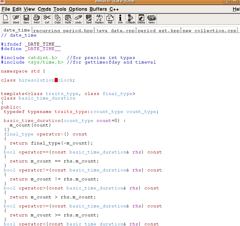 On 6/8/07, Rene Rivera <[EMAIL PROTECTED]> wrote:Jeff Garland wrote:Just so we get all our favorite editors, here's an xemacs sample ;-)http://www.crystalclearsoftware.com/boost_web/emacs_screenshot_2.png http://www.crystalclearsoftware.com/boost_web/emacs_screenshot_1.png Note that the emacs recognizer is smart enough to distinguish variable from typenames.Yes, classic emacs, throws in the kitchen sink and makes it look like rainbow coding ;-) Seriously... red == error, green == good (comments).