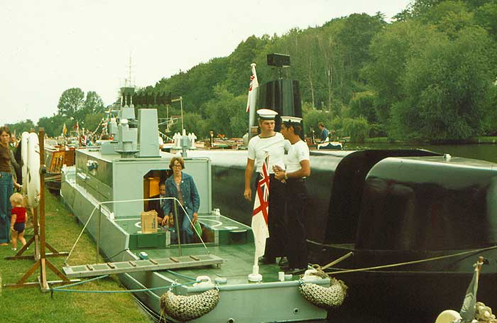 http://www.homescott.free-online.co.uk/OS/submarine.jpg was at Atherstone in about 1974 iirc. Ship's crew were doing a detailed log - Passed Bridge xx at 1327 etc - seemed to be enjoying it. http://www.homescott.free-online.co.uk/OS/RNfleet2.jpg http://www.homescott.free-online.co.uk/OS/RNFleetsmall.JPG Regards PeterScott
