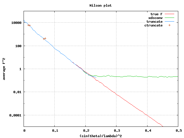 whereas "truncate" and "xdsconv" seem to reproduce the true Wilson plot