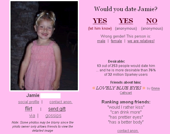 On Aug 26, 7:45 am, [EMAIL PROTECTED] wrote: > Many children have facebook, middle school students. Do you really > think they don't? They have cell phones, I-pods, PS3's and all kinds > of technology, they can certainly conquer the internet, and the easy- > to-navigate facebook. > > On Jun 29, 7:11 pm, [EMAIL PROTECTED] wrote: > > > > > perhaps before complaining you should consider that it's the user that > > puts photos of their children up... it has nothing to do with chainn.. > > there's nothing dangerous about it. as if you even for a second > > befelieve that a child has a facebook account. > > > On Jun 23, 9:51 pm, [EMAIL PROTECTED] wrote: > > > > I just encountered this:http://666kb.com/i/azs0jcamzruso43oh.jpg > > > > Will you fucking put an "OPT IN" function? Just fishing random people > > > out of a "pool" of profiles isn't only annoying to EACH AND EVERY > > > user, it's also DANGEROUS.- Hide quoted text - > > - Show quoted text - --~--~---------~--~----~------------~-------~--~----~ You received this message because you are subscribed to the Google Groups "Chainn" group. To post to this group, send email to [email protected] To unsubscribe from this group, send email to [EMAIL PROTECTED] For more options, visit this group at http://groups.google.com/group/chainn?hl=en -~----------~----~----~----~------~----~------~--~---
