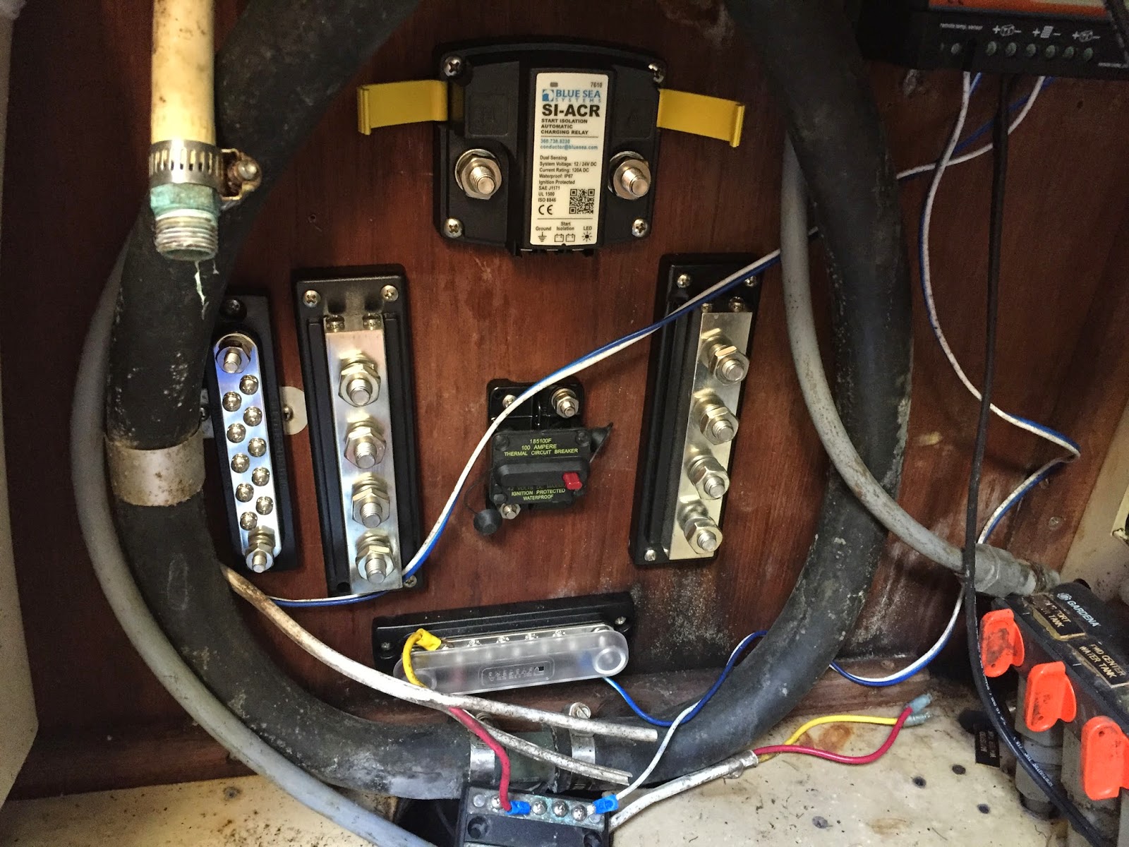 Here’s the panel: https://3.bp.blogspot.com/-kL_MNbXxZYw/WLyHSN5CpjI/AAAAAAAACgY/FrBlpbi7gSQ-WdnE0sO9cX3wMYYZ8HEkQCLcB/s1600/IMG_1539.JPG <https://3.bp.blogspot.com/-kL_MNbXxZYw/WLyHSN5CpjI/AAAAAAAACgY/FrBlpbi7gSQ-WdnE0sO9cX3wMYYZ8HEkQCLcB/s1600/IMG_1539.JPG> Here’s my wiring setup with the ACR in place (all under the sink and now covered with a panel.) The House bank is on the right side and the engine bank is on the left: http://4.bp.blogspot.com/-TgVDD71pKjA/VT5JCS193YI/AAAAAAAACTk/gQySP9mxadk/s1600/2015-04-25%2B15.49.25.jpg <http://4.bp.blogspot.com/-TgVDD71pKjA/VT5JCS193YI/AAAAAAAACTk/gQySP9mxadk/s1600/2015-04-25+15.49.25.jpg> This is the beginning of the project — everything has been rewired and cleaned up. All the best, Edd Edd M. Schillay Starship Enterprise C&C 37+ | Sail No: NCC-1701-B City Island, NY Starship Enterprise's Captain's Log <http://enterpriseb.blogspot.com/> > On Mar 22, 2017, at 12:22 PM, Thomas Delaney via CnC-List > <[email protected]> wrote: > > Edd, Bruce, > > Thank you both, your suggestions are very helpful. The BlueSea ACR will do > exactly what I need. > > I had never considered mounting a panel on the hatch, and leaving the boom > off center. Do you happen to have any photos of this setup? I love the idea > of the panel being completely out of the way while sailing and easily setup > when leaving the boat. > > Best, > Tom > > --- > Snow Goose > C&C 35 Mk I > City Island, NY > > ---------- Forwarded message ---------- > From: Bruce Whitmore <[email protected] > <mailto:[email protected]>> > To: [email protected] <mailto:[email protected]> > Cc: > Bcc: > Date: Wed, 22 Mar 2017 11:22:46 -0400 > Subject: Re: Stus-List Basic Solar Charging System? > On our 27 MKIII we mounted a semi flexible pane that could be walked on to > the sliding hatch and tied in a small charge controller and battery combiner. > We kept 2 series 24s and a series 27 charged on a mooring in Chicago for 10 > years this way. It kept the panel out of the way and we just tied the boom > off to one side when we left the boat. > > Kindest Regards, > > Bruce > 847.404.5092 <tel:(847)%20404-5092> > > Please forgive any typos as this was sent from my iPhone. > > On Mar 22, 2017, at 10:37 AM, Edd Schillay via CnC-List > <[email protected] <mailto:[email protected]>> wrote: > >> Tom, >> >> Sounds like a good system. The only different thing I have in my setup is a >> Blue Seas ACR instead of the Echo charger. See: >> https://www.bluesea.com/products/7610/SI-ACR_Automatic_Charging_Relay_-_12_24V_DC_120A >> >> <https://www.bluesea.com/products/7610/SI-ACR_Automatic_Charging_Relay_-_12_24V_DC_120A> >> >> >> Works VERY well. >> >> Another factor is the placement of the solar panel. A shadow from a boom >> will give you a significant drop in volts. >> >> Smith sailing to Snow Goose! Rest in Peace Artie Karpf. >> >> All the best, >> >> Edd >> >> >> Edd M. Schillay >> Starship Enterprise >> C&C 37+ | Sail No: NCC-1701-B >> City Island, NY >> Starship Enterprise's Captain's Log <http://enterpriseb.blogspot.com/> > -- > --- > Thomas C. Delaney > 917-337-552 > _______________________________________________ > > This list is supported by the generous donations of our members. If you wish > to make a contribution to offset our costs, please go to: > https://www.paypal.me/stumurray > > All Contributions are greatly appreciated!