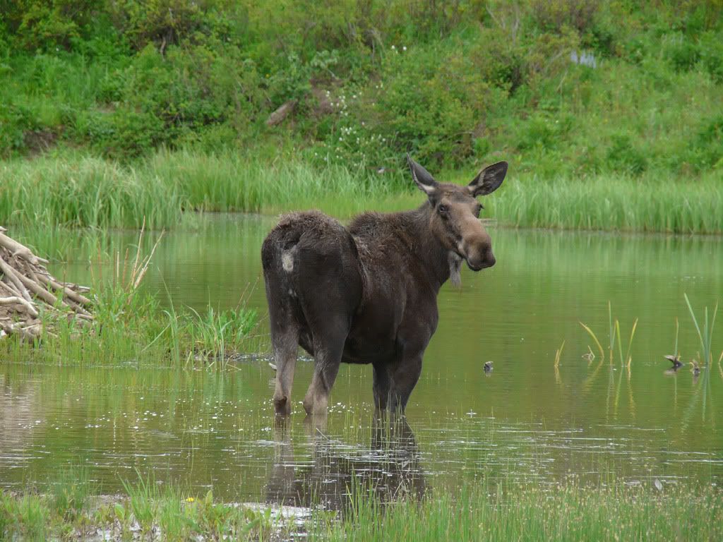 Fair birding, although the wind was still strong. I had just located a purple martin sitting at one end of a beaver pond, and eyed the large aspen stand at the other end of the pond, thinking it would be a great place to find a cavity (or six) to go with the martin, so we walked around the pond through the mud to get to the stand. Halfway across the mud, we found a very good moose track, and I stopped and took a photo. Just as I was picking up the camera to move on, my partner uttered (I am paraphrasing for the benefit of small children) "Look there!" I looked up, expecting some rare and unusual bird, and came face to face with a cow moose. We were well inside the "don't go there" limit, but she showed no signs of aggression, so yours truly kept snapping pictures, while my partner tried valiantly to get me to exit stage left. The cow came out of the trees, walked past us maybe 50 feet away, and ended up standing in the pond. http://img.photobucket.com/albums/v359/Dennis212/Colorado/P1070517lc.jpg We did back away and leave her to it, and decided that the moose combined with the wind made it unwise to continue our endeavors. I did end up with more than 50 photos, however, and was not trampled into the mud. I need to go back and find the martin nest, tho. Moral of the story: If you are birding around the Mesa, look behind you once in a while. Other than the martin, today's birding highlight was a western grebe at Lost Lake Slough off of the Kebler Pass road in Gunnison County, elevation just a hair under 10K. First one I have seen there. Dennis Garrison Paonia, Delta County _________________________________________________________________ Hotmail® has ever-growing storage! Don’t worry about storage limits. http://windowslive.com/Tutorial/Hotmail/Storage?ocid=TXT_TAGLM_WL_HM_Tutorial_Storage_062009 --~--~---------~--~----~------------~-------~--~----~ Colorado County Birding: http://www.coloradocountybirding.com/ You received this message because you are subscribed to the Google Groups "Colorado Birds" group. To post to this group, send email to [email protected] To unsubscribe from this group, send email to [email protected] For more options, visit this group at http://groups.google.as/group/cobirds?hl=en -~----------~----~----~----~------~----~------~--~---