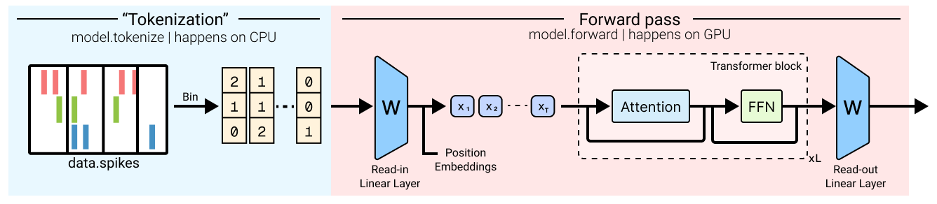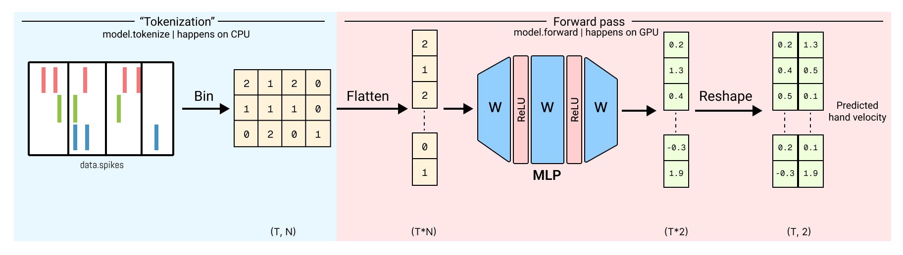 commit 512012175e20cc5ca6a2b7084ca4460278f0feb8 Author: yasith <[email protected]> AuthorDate: Fri Apr 4 09:10:24 2025 -0400 update notebooks --- .../data/cosyne/cosyne_tutorial_part_1.ipynb | 1 + .../data/cosyne/cosyne_tutorial_part_2.ipynb | 2470 ++++++++++++++++++++ .../jupyterhub/data/cosyne/cybershuttle.yml | 64 + .../jupyterhub/data/gkeyll/plotE_z.ipynb | 6 +- 4 files changed, 2538 insertions(+), 3 deletions(-) diff --git a/modules/agent-framework/deployments/jupyterhub/data/cosyne/cosyne_tutorial_part_1.ipynb b/modules/agent-framework/deployments/jupyterhub/data/cosyne/cosyne_tutorial_part_1.ipynb new file mode 100644 index 0000000000..e94e01ad2f --- /dev/null +++ b/modules/agent-framework/deployments/jupyterhub/data/cosyne/cosyne_tutorial_part_1.ipynb @@ -0,0 +1 @@ +{"nbformat":4,"nbformat_minor":0,"metadata":{"colab":{"provenance":[],"gpuType":"T4"},"kernelspec":{"name":"python3","display_name":"Python 3"},"language_info":{"name":"python"}},"cells":[{"cell_type":"markdown","source":["# Foundations of Transformers in Neuroscience Tutorial\n","\n","Authors: Mehdi Azabou | Contributions: Vinam Arora, Shivashriganesh Mahato, Eva Dyer\n","\n","***\n","\n","In this notebook, we will go through an example for preparing a dataset using\n","data objects fro [...] \ No newline at end of file diff --git a/modules/agent-framework/deployments/jupyterhub/data/cosyne/cosyne_tutorial_part_2.ipynb b/modules/agent-framework/deployments/jupyterhub/data/cosyne/cosyne_tutorial_part_2.ipynb new file mode 100644 index 0000000000..1504196598 --- /dev/null +++ b/modules/agent-framework/deployments/jupyterhub/data/cosyne/cosyne_tutorial_part_2.ipynb @@ -0,0 +1,2470 @@ +{ + "cells": [ + { + "cell_type": "markdown", + "id": "3ImhQu3SEILJ", + "metadata": { + "id": "3ImhQu3SEILJ" + }, + "source": [ + "# Foundations of Transformers in Neuroscience Tutorial\n", + "\n", + "Authors: Shivashriganesh Mahato, Vinam Arora | Contributions: Mehdi Azabou, Sergey Shuvaev, Julie Young, Eva Dyer\n", + "\n", + "***\n", + "\n", + "The goal of this notebook is to show you how to work with datasets and dataloaders, build and train several neural decoding models (a simple MLP, a Transformer, and POYO), fine-tune a pretrained POYO model on a new session, and visualize training. This notebook is designed to be interactive and provide visual feedback. As you work through the cells, try to run them and observe the results. Detailed explanations are provided along the way.\n", + "\n", + "<center>\n", + "<img src=\"https://torch-brain.readthedocs.io/en/latest/_static/torch_brain_logo.png\" width=\"150\" height=\"150\" alt=\"torch_brain Logo\">\n", + "</center>\n", + "\n", + "\n", + "We will focus on three main topics in this notebook:\n", + "* **Part 1: DataLoaders**\n", + "* **Part 2: Training Models**\n", + "* **Part 3: Finetuning and Visualizations**\n", + "\n", + "\n", + "\\\\\n", + "General references:\n", + "\n", + "- [**torch_brain** documentation](<https://torch-brain.readthedocs.io/en/latest/index.html>)\n", + "- [pytorch tutorials](<https://pytorch.org/tutorials/beginner/basics/intro.html>)" + ] + }, + { + "cell_type": "markdown", + "id": "BycghpnsEKBg", + "metadata": { + "id": "BycghpnsEKBg" + }, + "source": [ + "***\n", + "## Setup\n", + "\n", + "First, let's install **torch_brain**, and get you set up with some simple utility functions that will be used throughout this notebook." + ] + }, + { + "cell_type": "code", + "execution_count": null, + "id": "hDjkZJkEEMJR", + "metadata": { + "id": "hDjkZJkEEMJR" + }, + "outputs": [], + "source": [ + "! uv pip install pytorch_brain -q\n", + "\n", + "# We use uv for the installation here, which seems to work better with google colab.\n", + "# Although UV is awesome and we highly recommend it, you could install it with vanilla pip\n", + "# in your local environments" + ] + }, + { + "cell_type": "markdown", + "id": "aaMelfAWsl2h", + "metadata": { + "id": "aaMelfAWsl2h" + }, + "source": [ + "### Run the block below to load utility functions." + ] + }, + { + "cell_type": "code", + "execution_count": null, + "id": "agXH4LvWEMJS", + "metadata": { + "id": "agXH4LvWEMJS" + }, + "outputs": [], + "source": [ + "import torch\n", + "import numpy as np\n", + "import matplotlib.pyplot as plt\n", + "from omegaconf import OmegaConf\n", + "import warnings\n", + "import logging\n", + "from torch_brain.utils import seed_everything\n", + "\n", + "device = torch.device(\"cuda:0\" if torch.cuda.is_available() else \"cpu\")\n", + "\n", + "warnings.filterwarnings('ignore')\n", + "logging.disable(logging.WARNING)\n", + "\n", + "\n", + "def move_to_gpu(data, device):\n", + " \"\"\"\n", + " Recursively moves tensors (or collections of tensors) to the given device.\n", + " \"\"\"\n", + " if isinstance(data, torch.Tensor):\n", + " return data.to(device)\n", + " elif isinstance(data, dict):\n", + " return {k: move_to_gpu(v, device) for k, v in data.items()}\n", + " elif isinstance(data, list):\n", + " return [move_to_gpu(elem, device) for elem in data]\n", + " else:\n", + " return data\n", + "\n", + "\n", + "def bin_spikes(spikes, num_units, bin_size, right=True, num_bins=None):\n", + " \"\"\"\n", + " Bins spike timestamps into a 2D array: [num_units x num_bins].\n", + " \"\"\"\n", + " rate = 1 / bin_size # avoid precision issues\n", + " binned_spikes = np.zeros((num_units, num_bins))\n", + " bin_index = np.floor((spikes.timestamps) * rate).astype(int)\n", + " np.add.at(binned_spikes, (spikes.unit_index, bin_index), 1)\n", + " return binned_spikes\n", + "\n", + "\n", + "def r2_score(y_pred, y_true):\n", + " # Compute total sum of squares (variance of the true values)\n", + " y_true_mean = torch.mean(y_true, dim=0, keepdim=True)\n", + " ss_total = torch.sum((y_true - y_true_mean) ** 2)\n", + "\n", + " # Compute residual sum of squares\n", + " ss_res = torch.sum((y_true - y_pred) ** 2)\n", + "\n", + " # Compute R^2\n", + " r2 = 1 - ss_res / ss_total\n", + "\n", + " return r2\n", + "\n", + "\n", + "def compute_r2