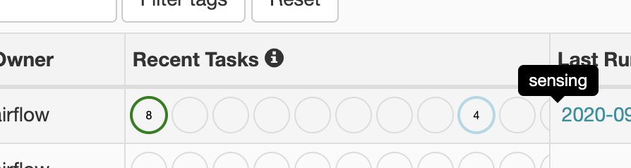 Resolves apache/airflow#10935. Prevents the "Recent Tasks" UI from being overlapped. The math simply did not add up. I replaced the hard-coded value with the math to hopefully avoid this discrepancy with future changes. Each circle is 25px wide. Spacing is 4px. ``` 11*25 = 275 (circles) 12*4 = 48 (spaces) 275+48 = 323 ``` | Before | After | |---|---| |  |  | ---------------------------------------------------------------- This is an automated message from the Apache Git Service. To respond to the message, please log on to GitHub and use the URL above to go to the specific comment. For queries about this service, please contact Infrastructure at: [email protected]