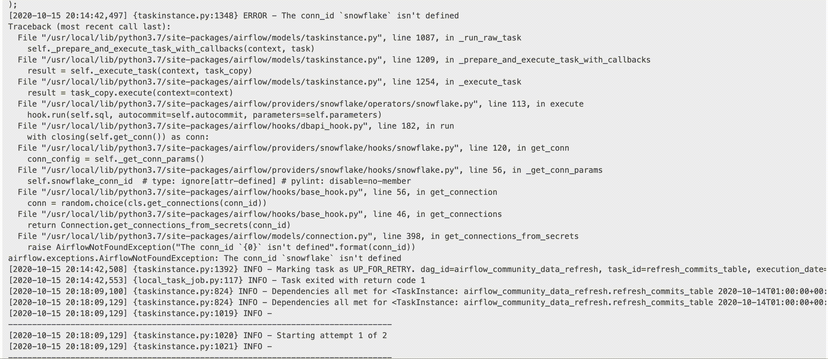 Possible i'm doing something wrong, but doesn't seem that Airflow is recognizing my connection.  ---------------------------------------------------------------- This is an automated message from the Apache Git Service. To respond to the message, please log on to GitHub and use the URL above to go to the specific comment. For queries about this service, please contact Infrastructure at: [email protected]