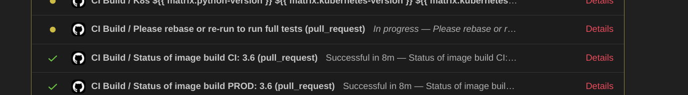 That's the nice thing we got working finally: This PR will not get green "squash and merge" as this in-progress check will stay there until rebase/re-run  ---------------------------------------------------------------- This is an automated message from the Apache Git Service. To respond to the message, please log on to GitHub and use the URL above to go to the specific comment. For queries about this service, please contact Infrastructure at: [email protected]